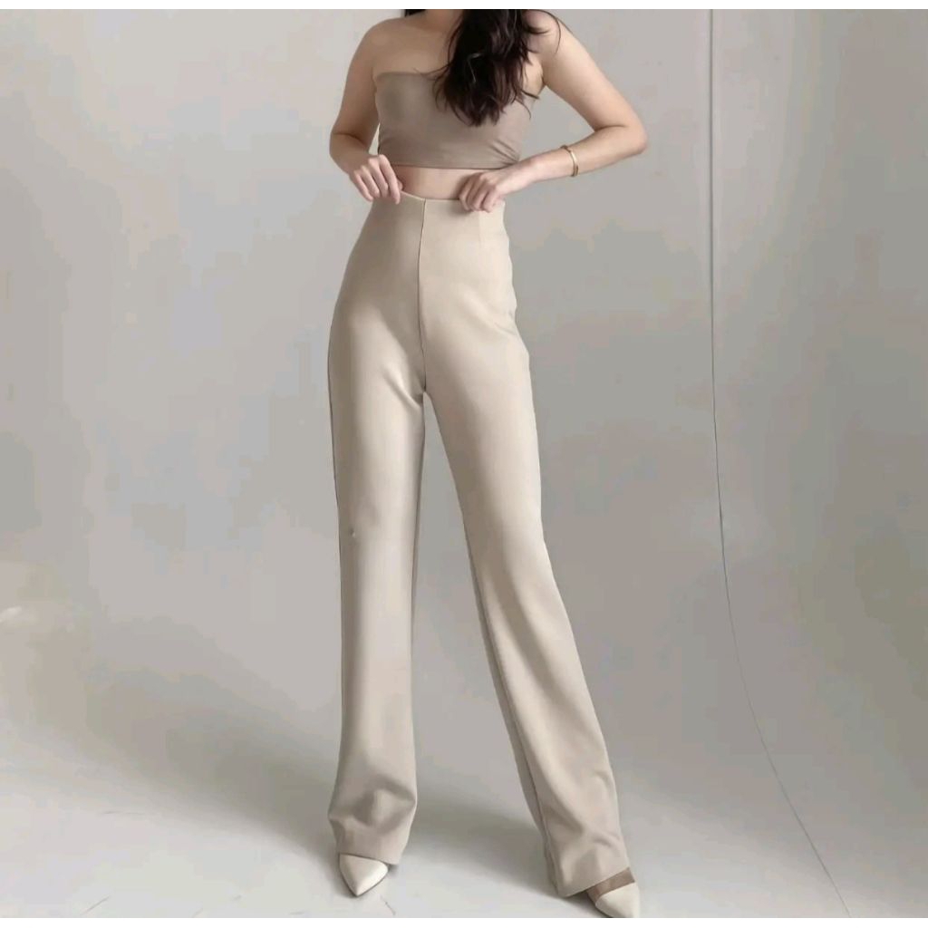 Cutbray RIB Knit Japan Line - Celana Panjang Wanita Korean Style Highwaist - CELANA CUTBRAY KNIT WANITA