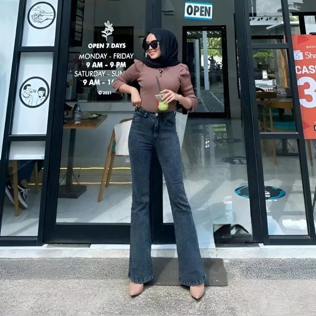 Highwaist Cutbray Jeans Wanita - Celana Cutbray Stretch Kekinian