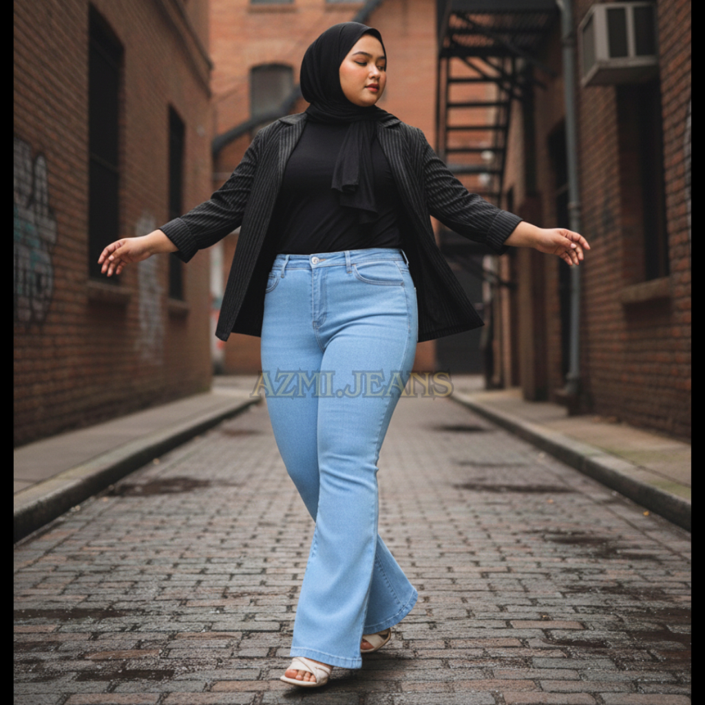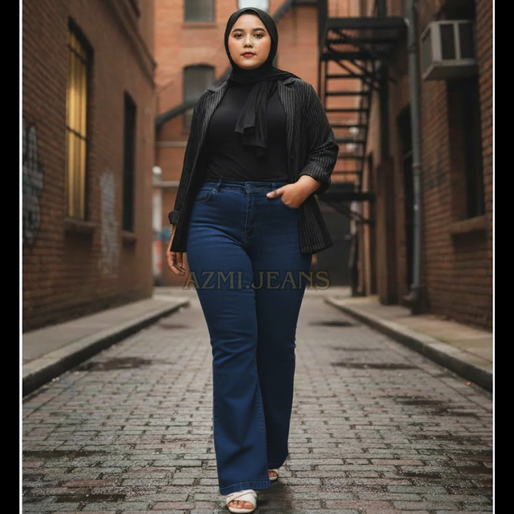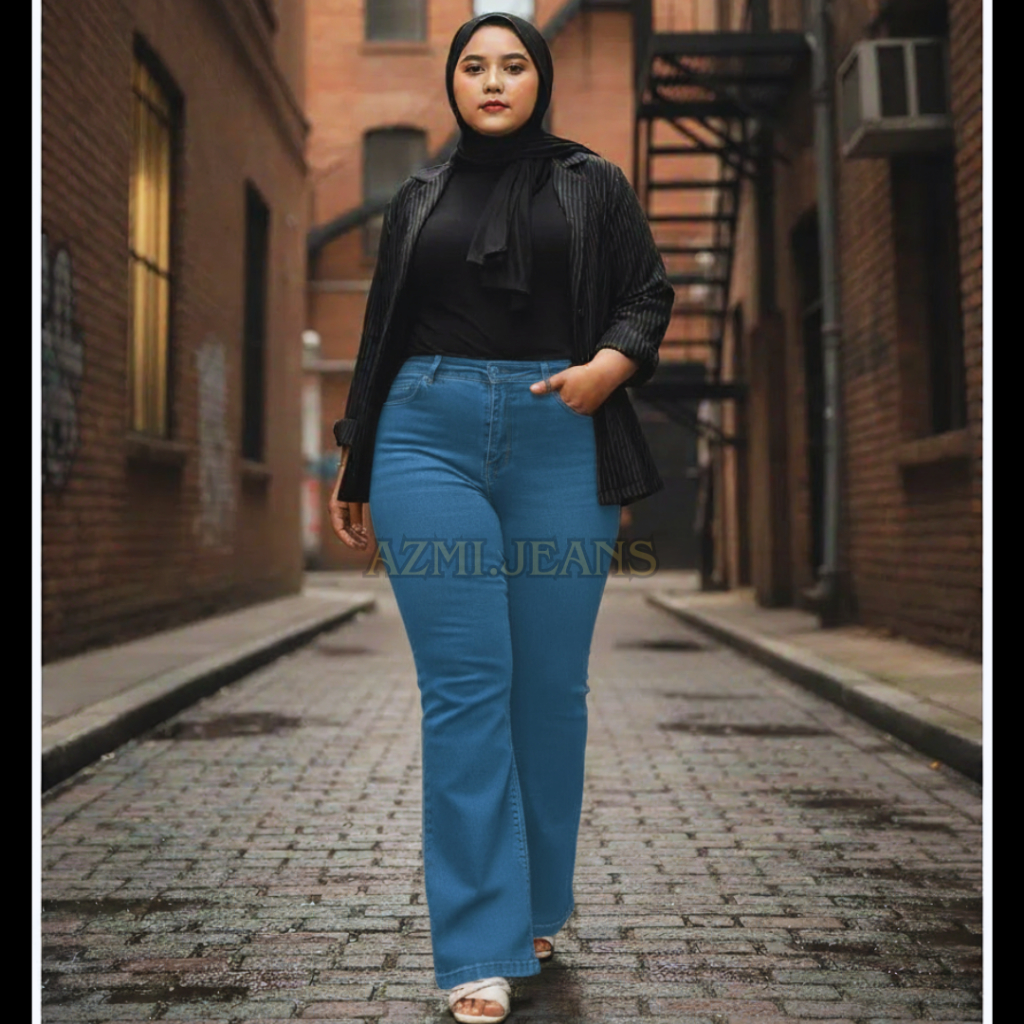 Celana Jeans Wanita Cutbray Jumbo Big Size Highwaist Loose Premium Stretch Kekinian Muat BB 100Kg