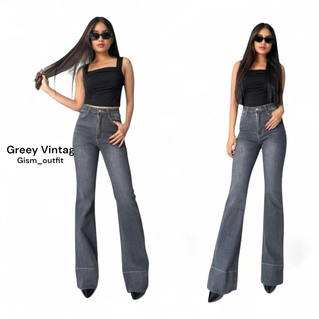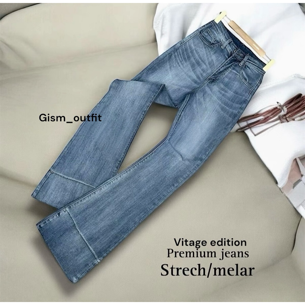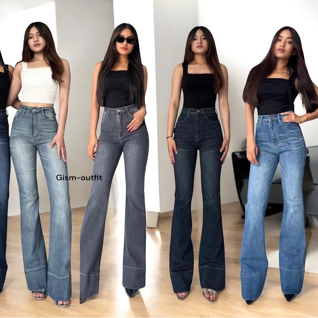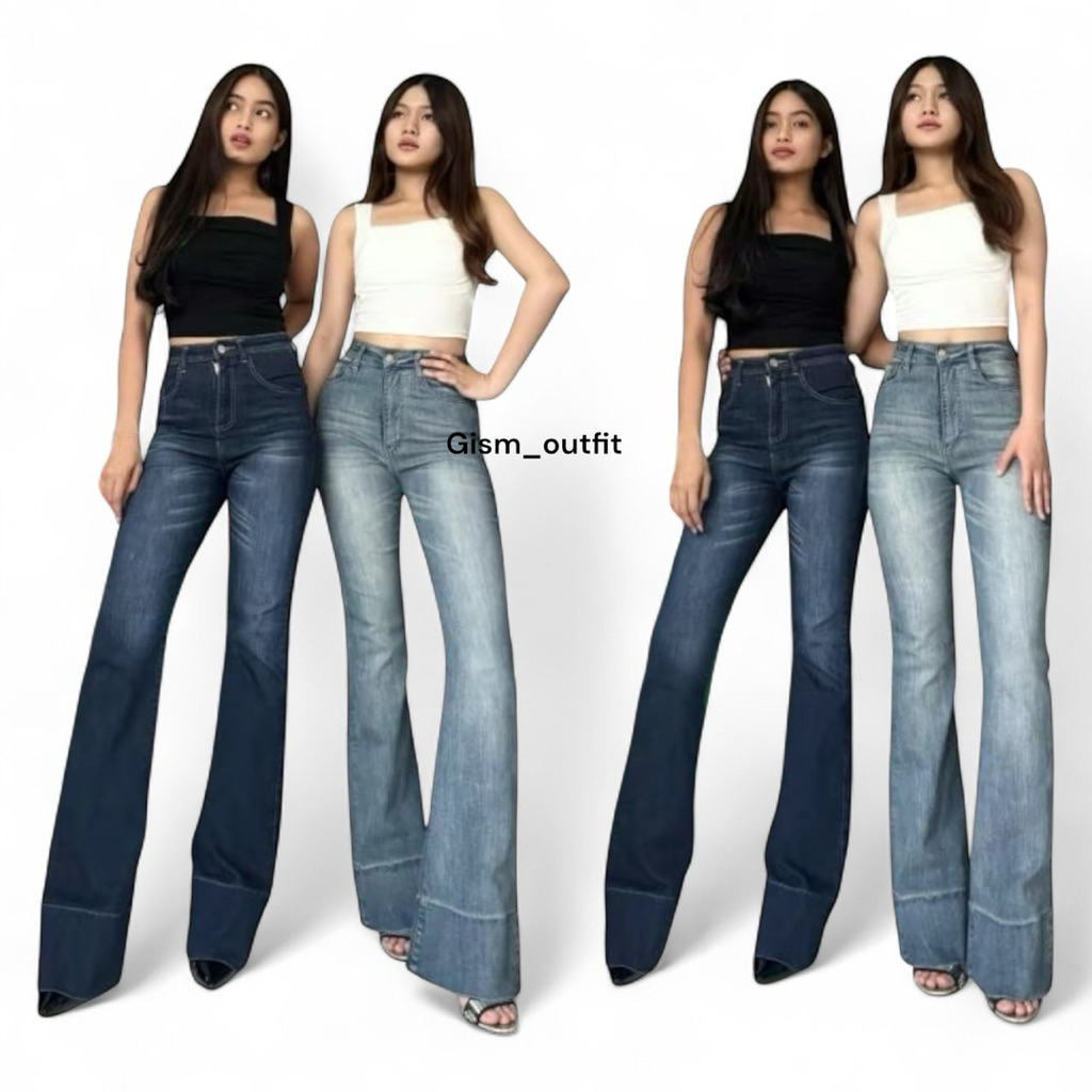 Jennie-HighWaist Cutbray Jeans Celana Fit&Flare Panjang Stretch Wanita Retro Vintage Lipat Bawah