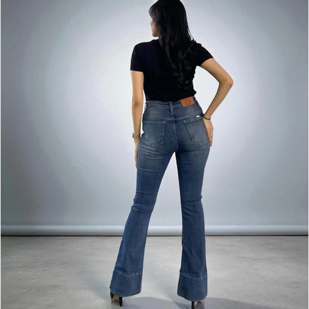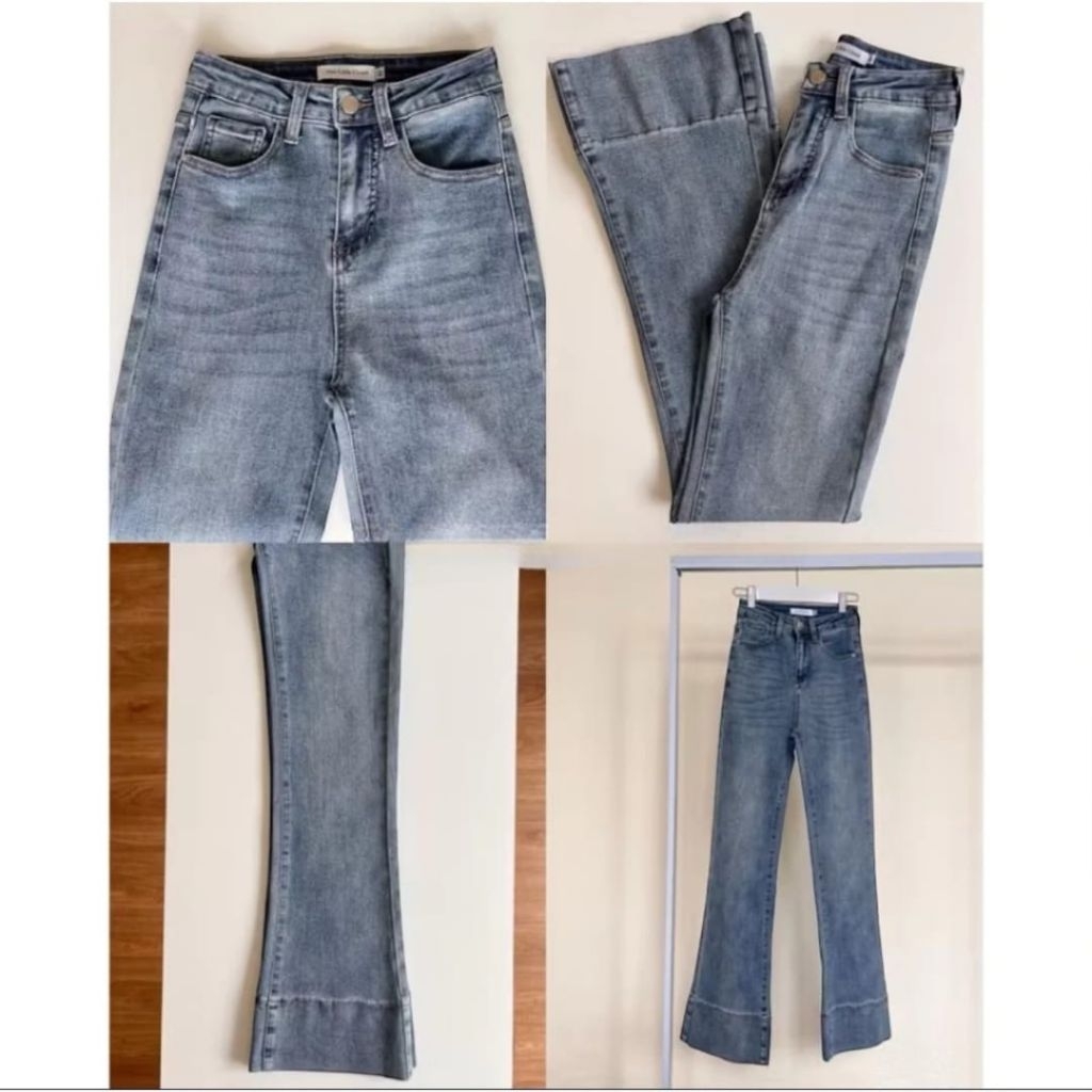 Jennie-Highwaist Cutbray Jeans Celana Flare Panjang Stretch Wanita Retro Vintage Lipat Bawah