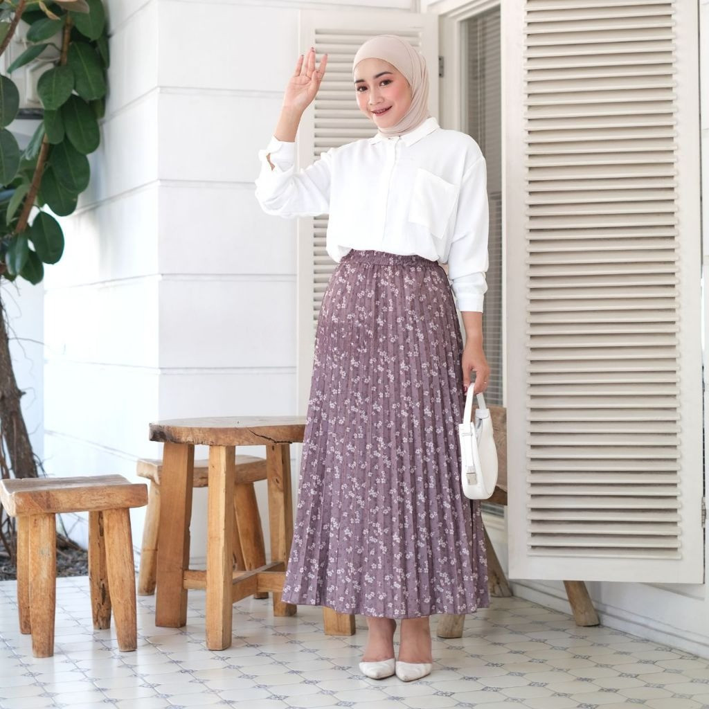 ROK PLISKET MOTIF / ROK PLISKET VIRAL / FLOWERY PLEATS SKIRT ROK PLISKET BUNGA KOREA