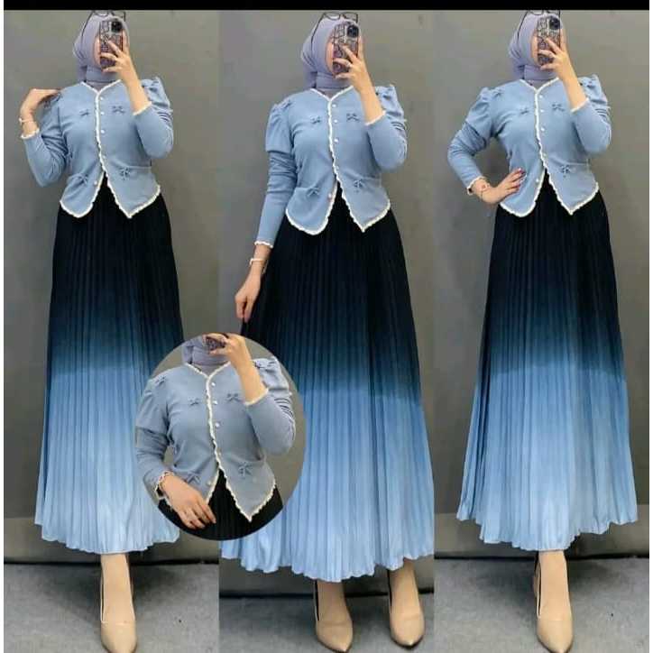 Rok Plisket Gradasi Hyget Mayung Pinggang Karet/Rok Gradasi Dua Warna Premium