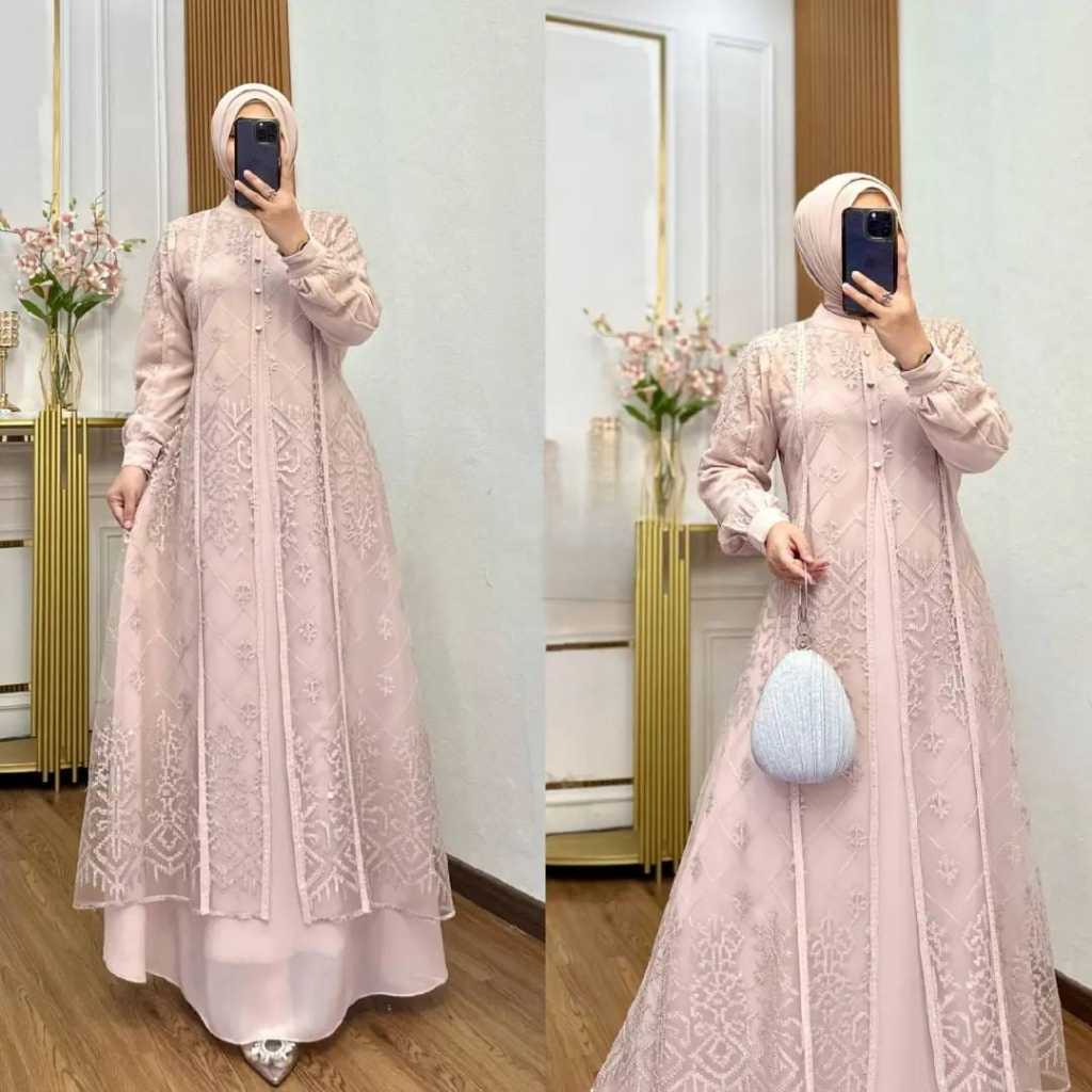Dress Mahogany Denara Bahan Ceruty Armany Mix Brukat Aplikasi Swarovski Baju Pesta Mewah Viral 2025