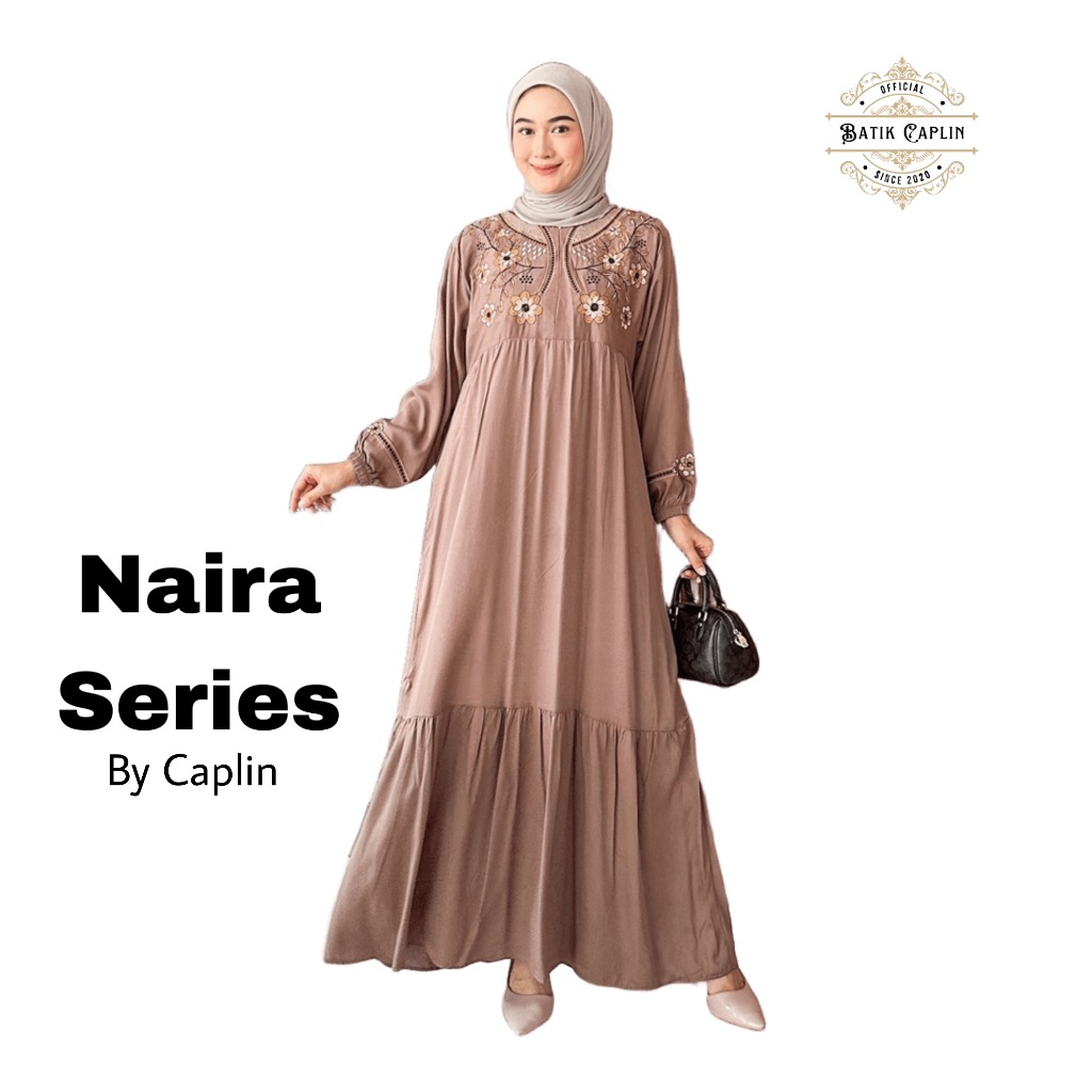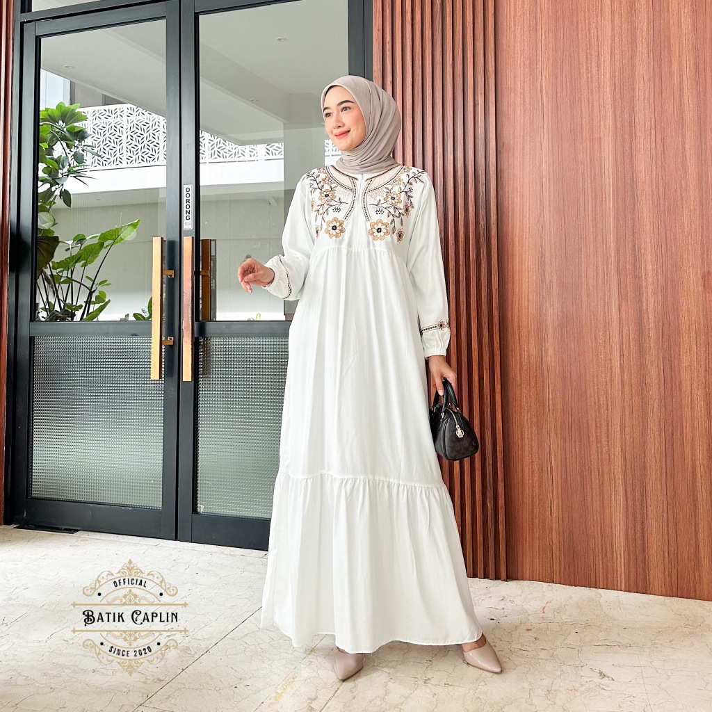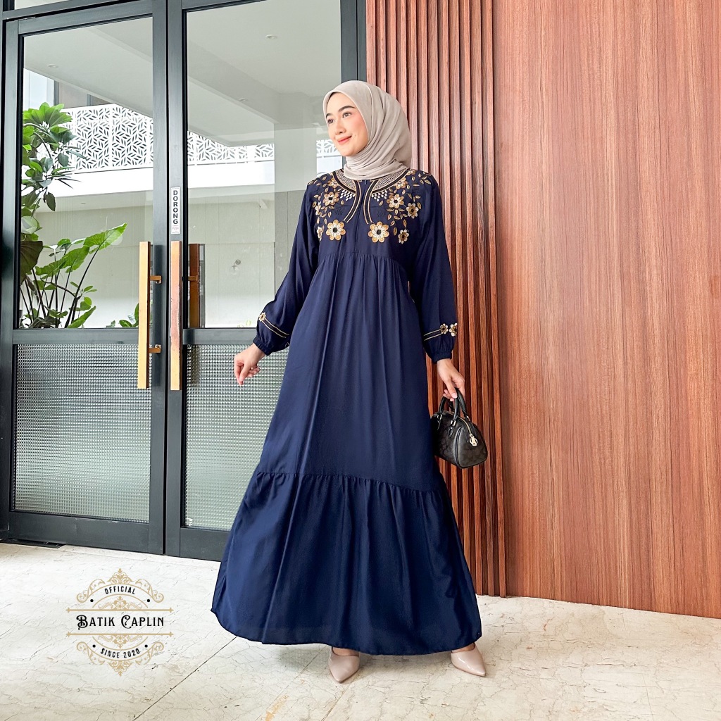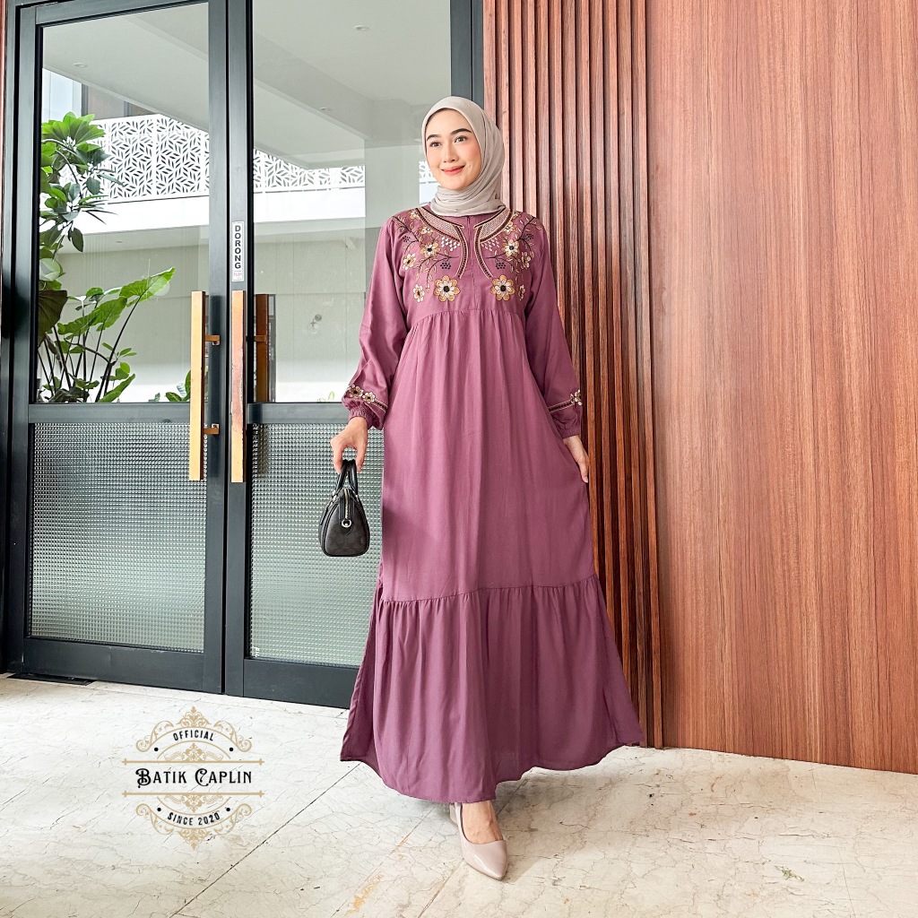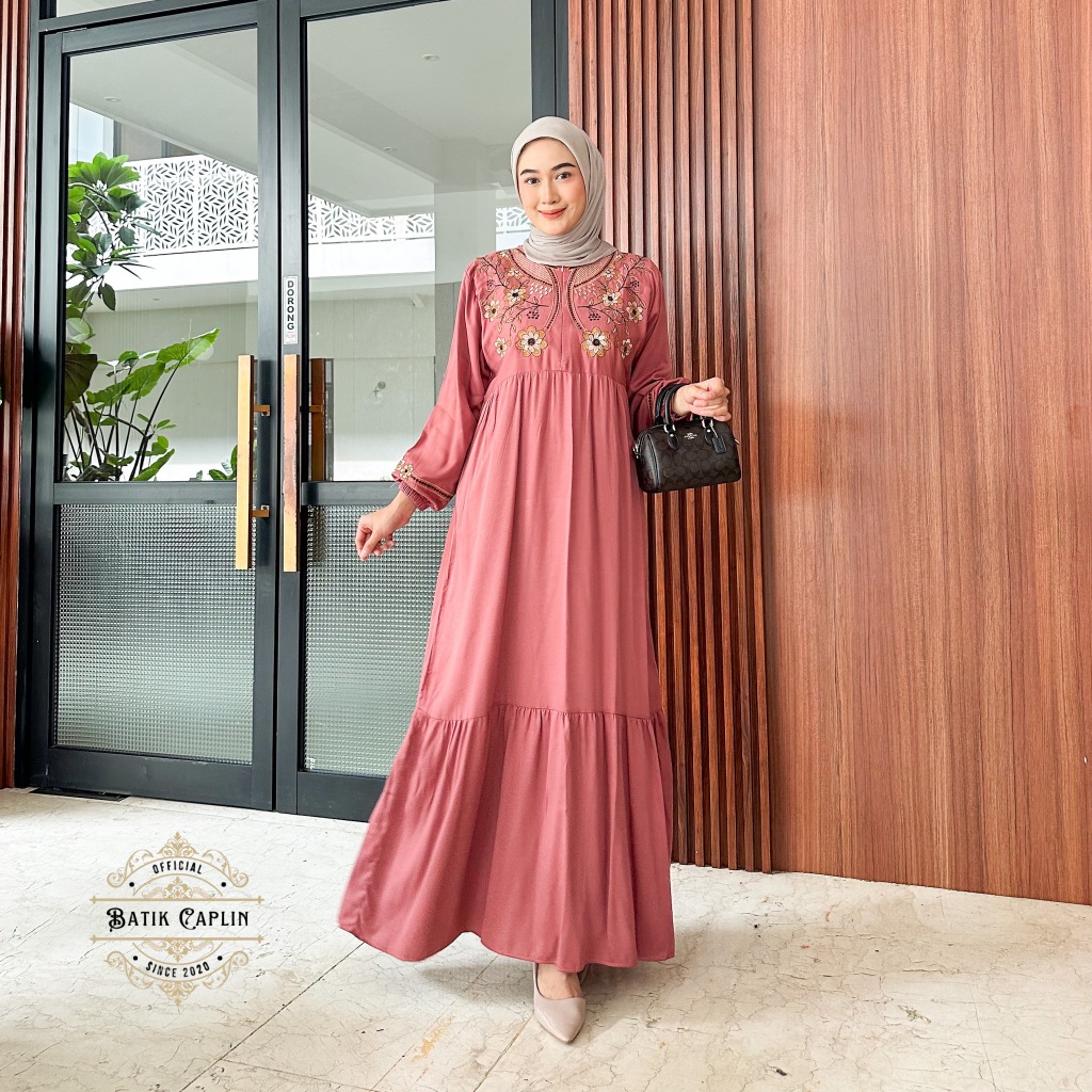 Batik Caplin - Naira Dress Muslim Gamis Bordir Rayon Twill Premium Modis Elegan Nyaman