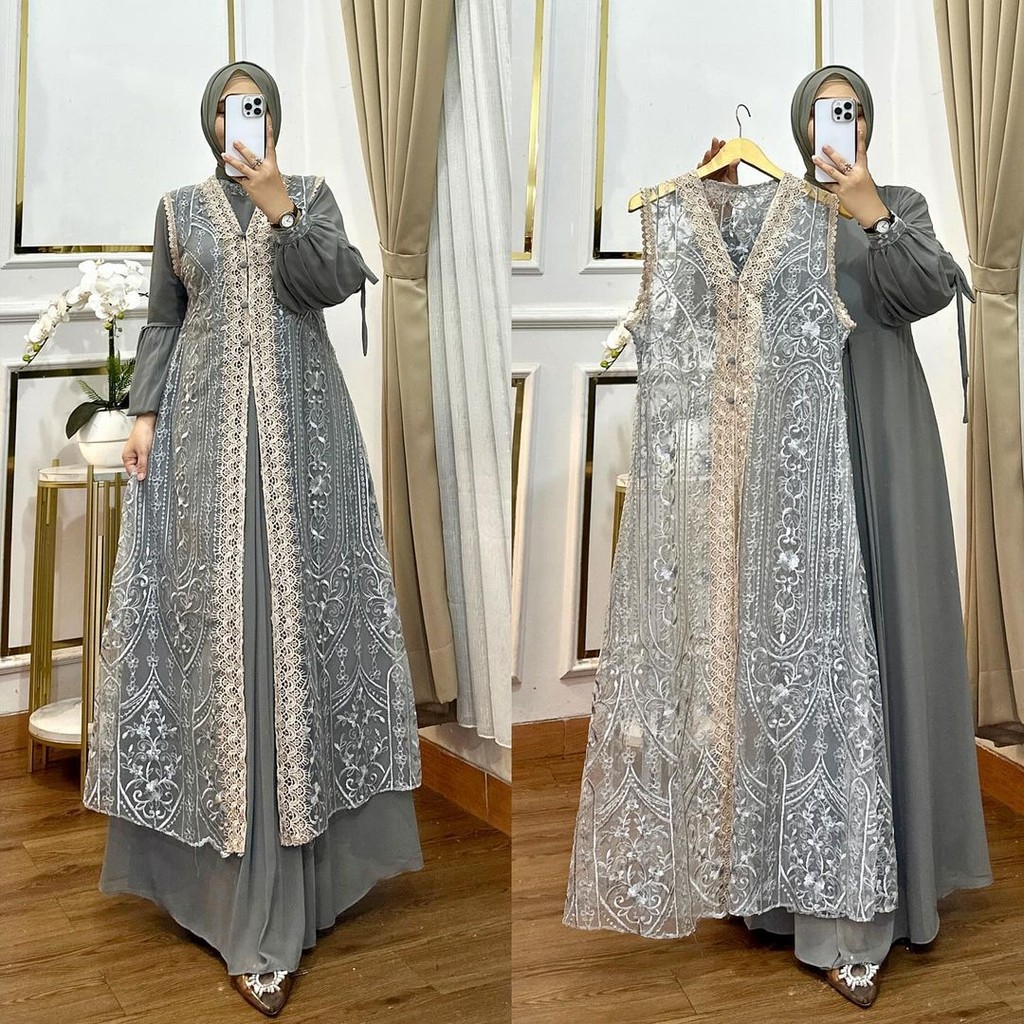 Femes Naura Dress Maxy Wanita Dewasa Muslim Fit To XL Besar Premium OOTD Lebaran l Pesta Kondangan