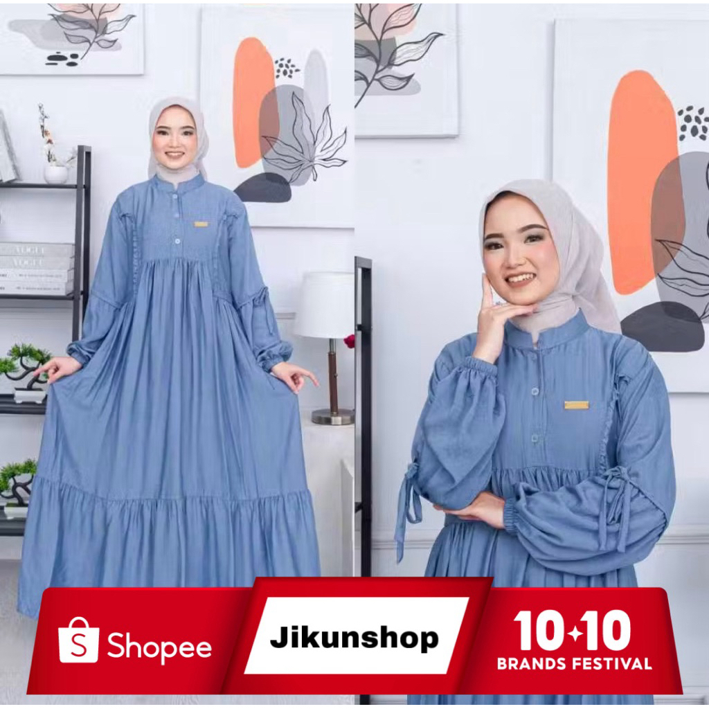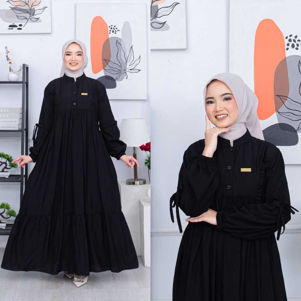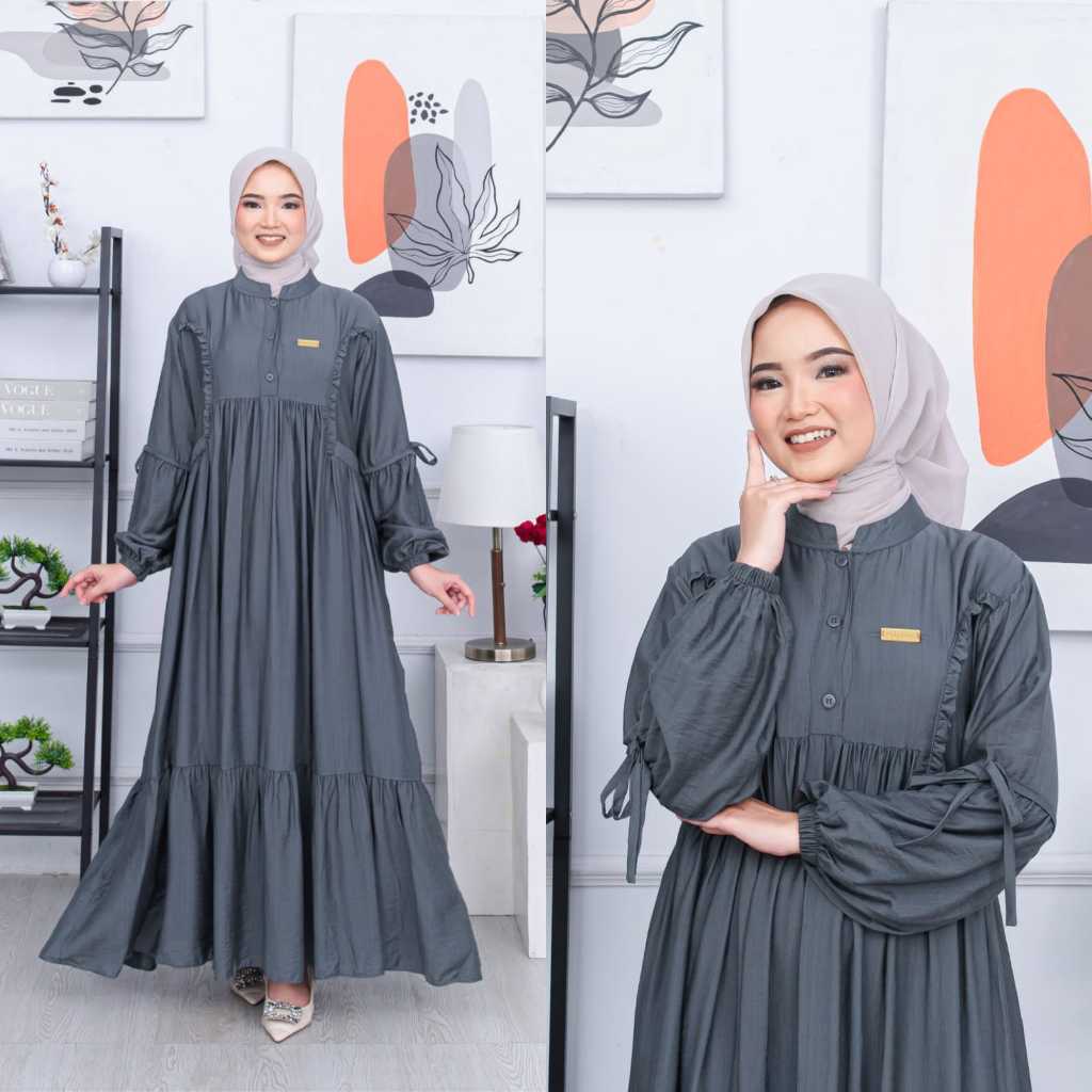 ZAFIRA DRESS Gamis Muslimah Polos Polo Linen Aksen Kancing Variasi Ruffle Cantik Busui Friendly
