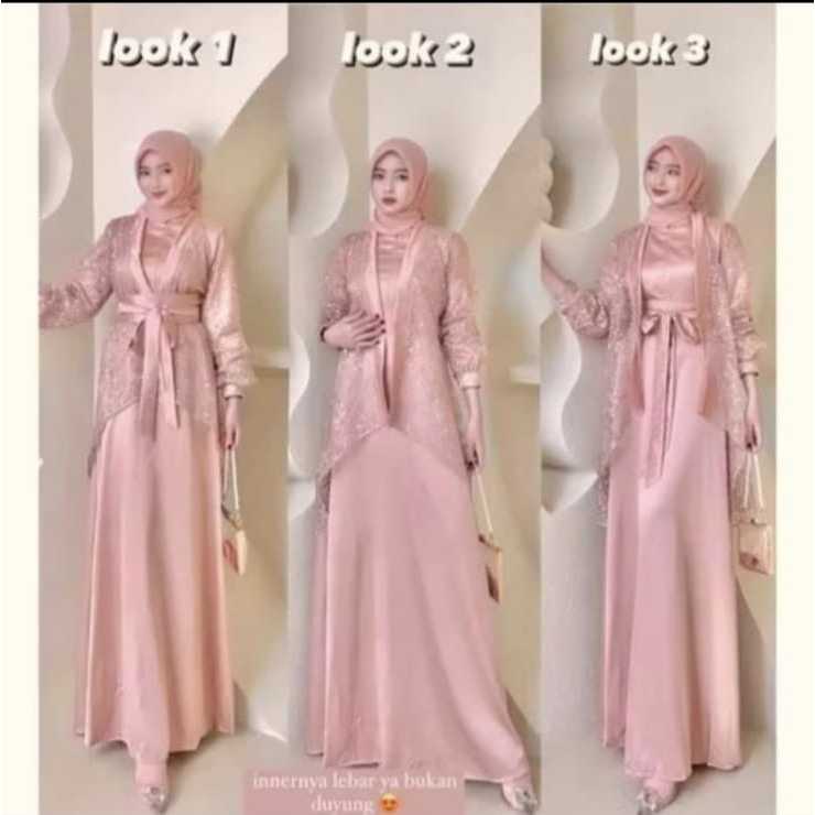 Veloxa Dress Gamis Outer Terbaru Gamis Velvet Mix Brukat Gamis warna Mahagony Gamis Pesta Mewah