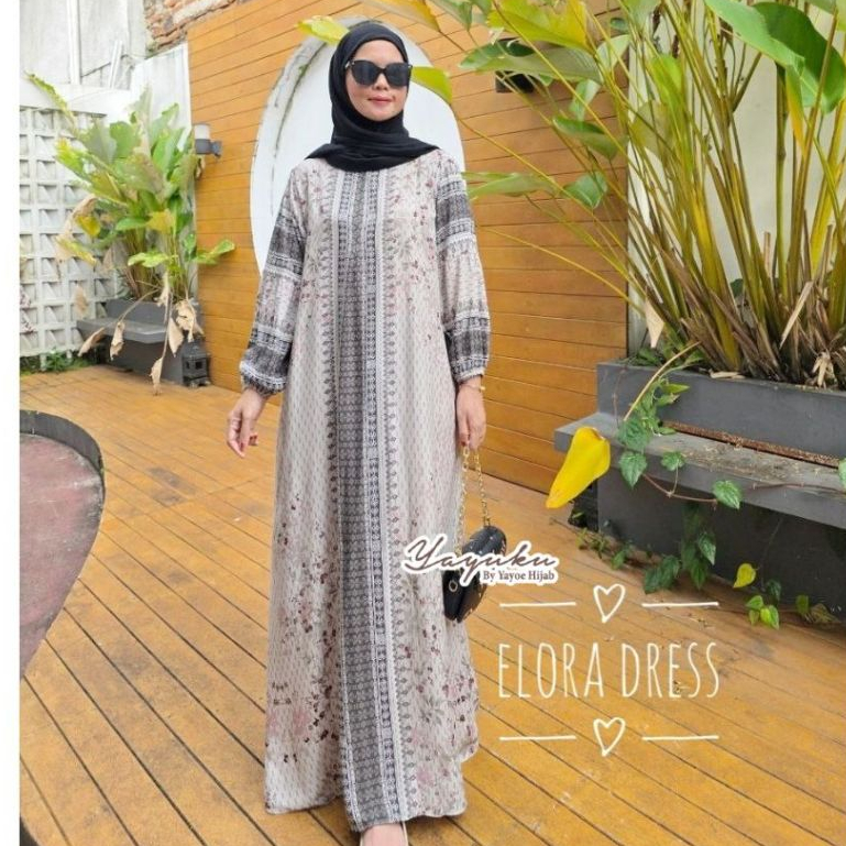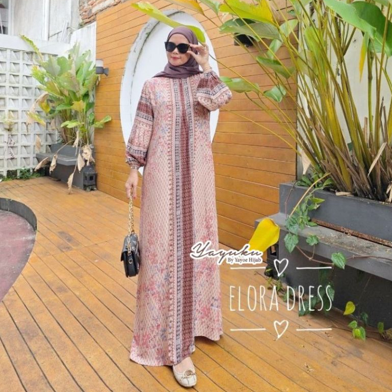 Elora Dress Gamis Panjang Rayon Terbaru Muslimah Model Lengan Balon Yayuku by Yayoe Hijab