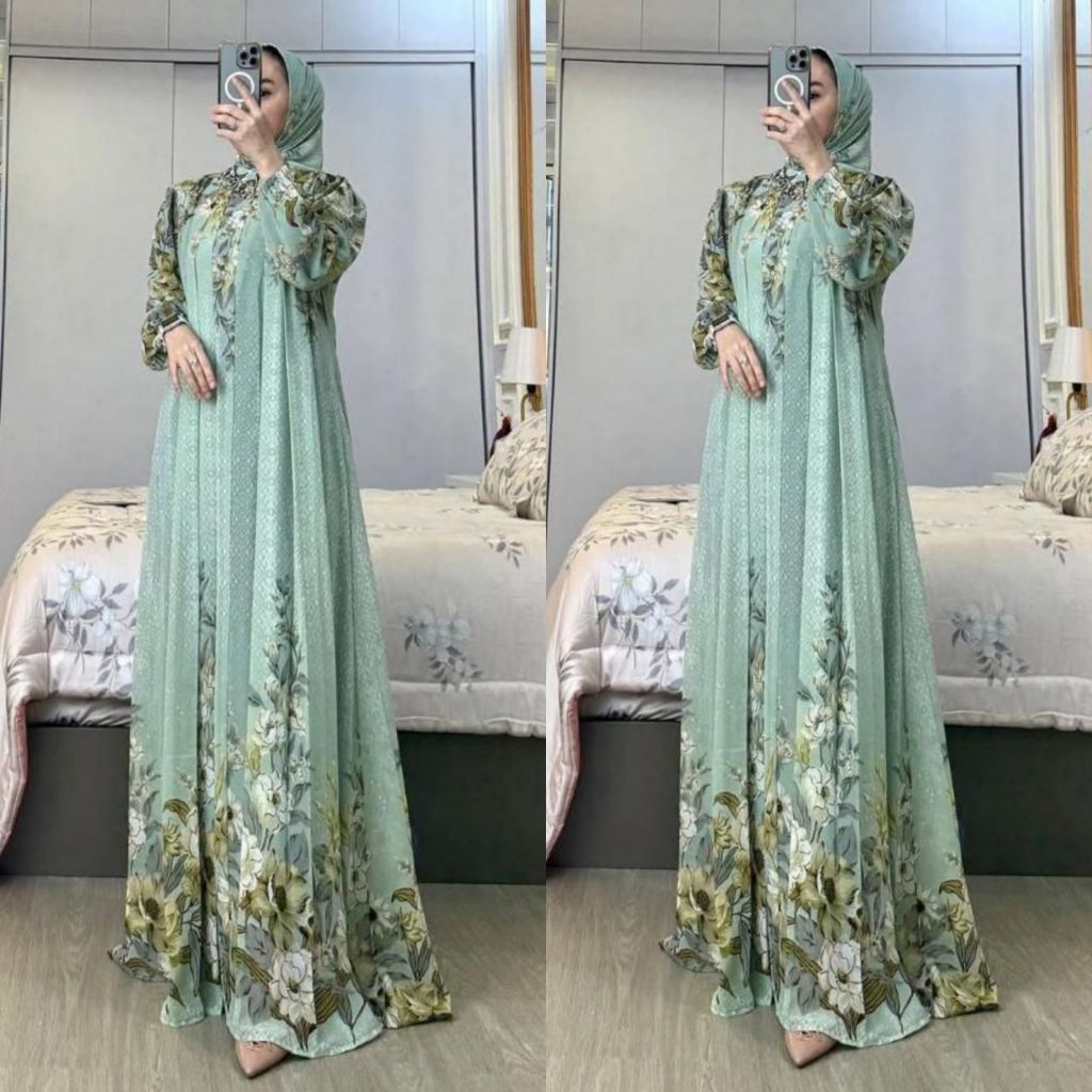 Gamis Wanita Setelan Hijab Segiempat - Bahan Rayon Diamond - Gamis Lebaran 2025 Model Gamis Terbaru
