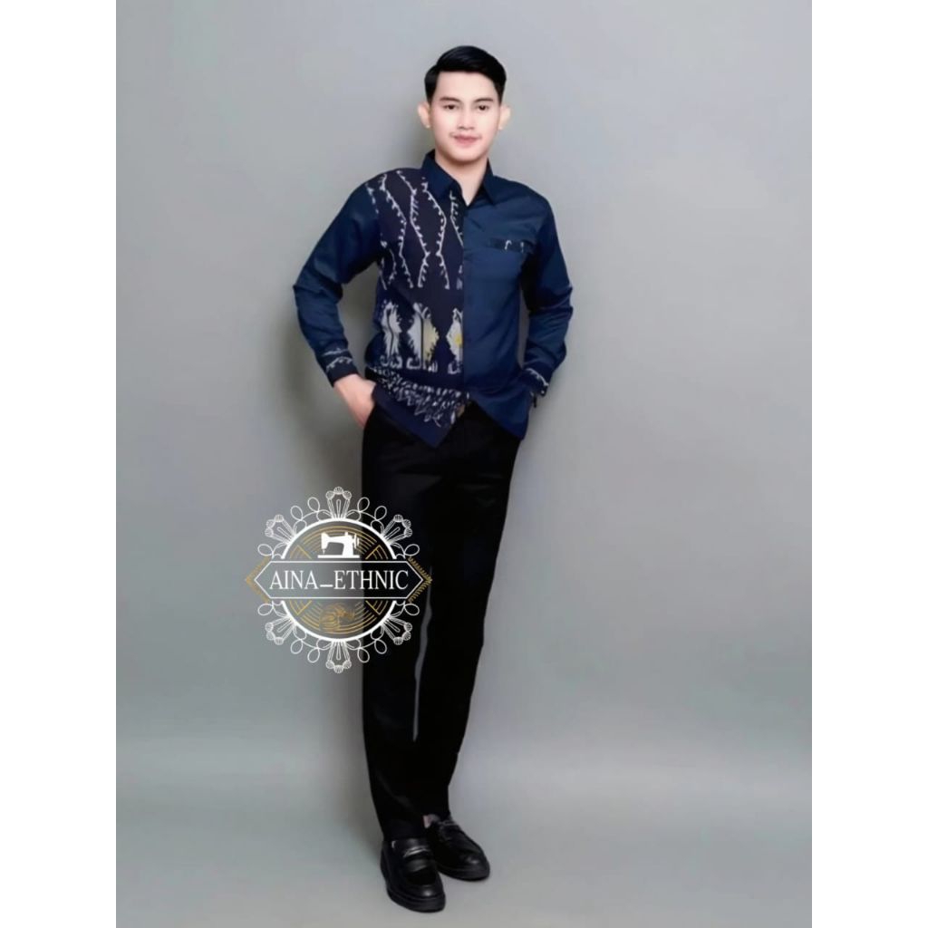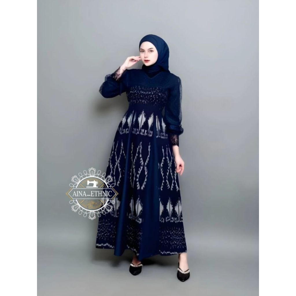AINA SET BAJU COUPLE TENUN TERBARU THALIA NAVY, Gamis Set Couple Tenun Keluarga Dress Kondangan