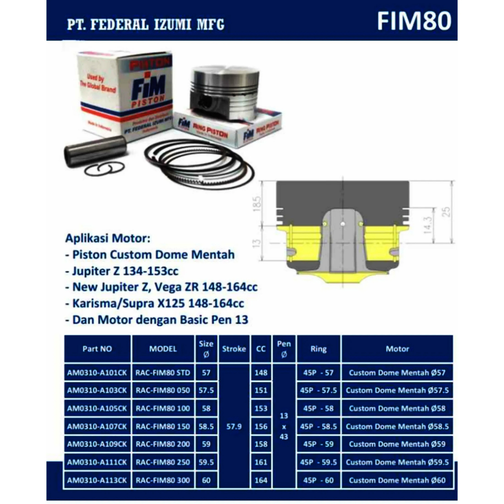PISTON SEHER SET FIM MENTAH CUSTOM 57 57.5 58 58.5 59 59.5 60 61 62 63 PIN PEN 13 14 15 Jupiter Mio Beat Scoopy Vario Ti