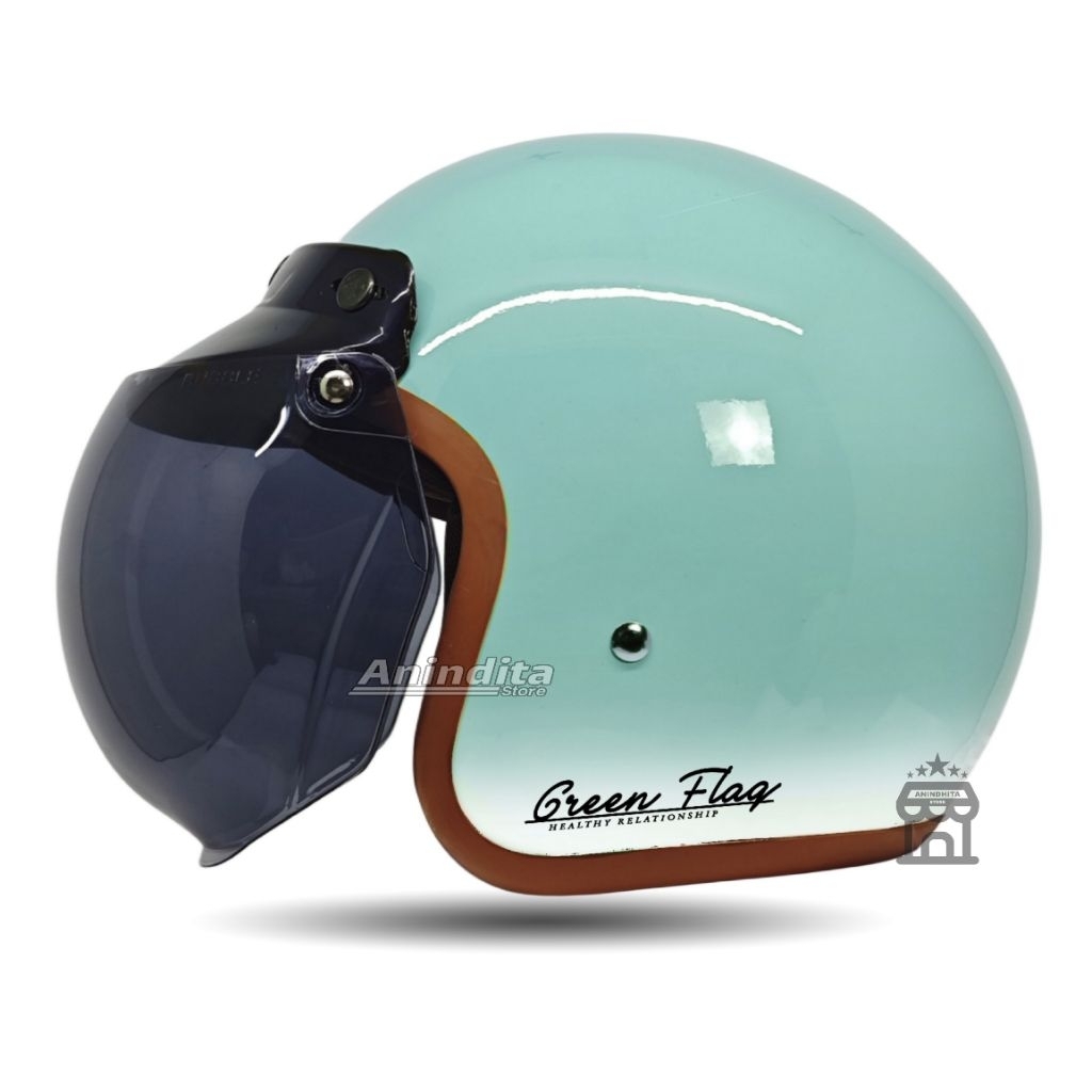 Helmi Bogo Classic Gradasi Dewasa Retro Green Flag List Coklat
