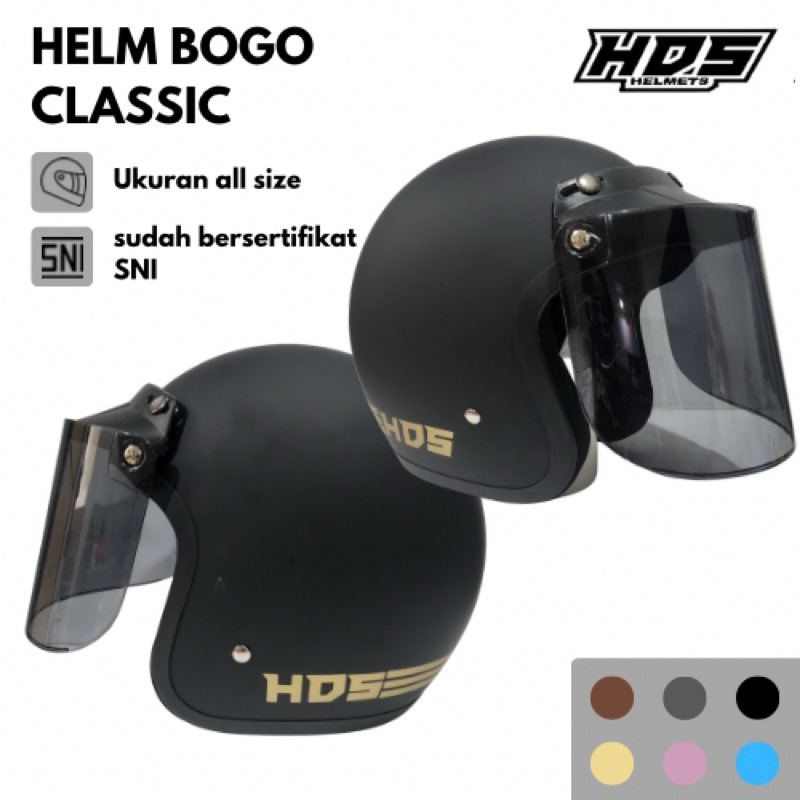 Helm Bogo Dewasa Klasik SNI HDS Helmet Polos Half Face Retro Classic Pria Wanita Hijab