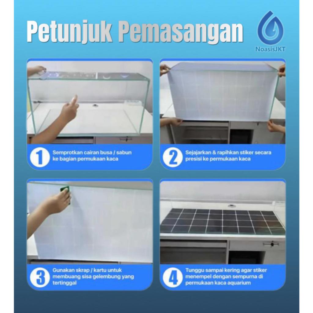 Skotlet Aquarium Sticker Alas Motif Kotak Kotak Stiker Dasar Akuarium
