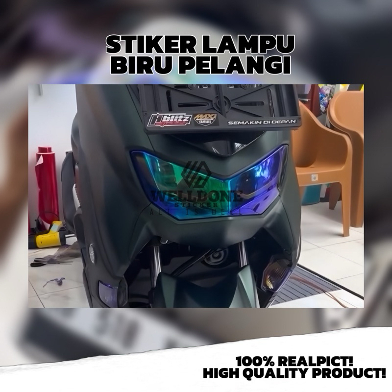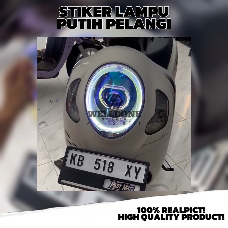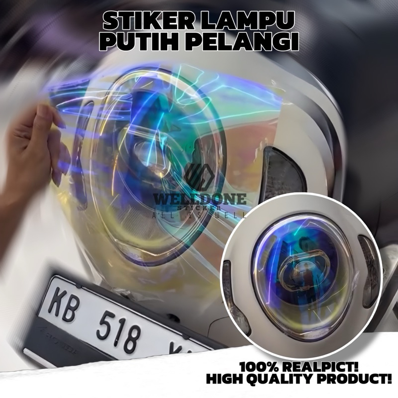 stiker lampu motor putih pelangi skotlet e hitam mika lampu motor dan mobil