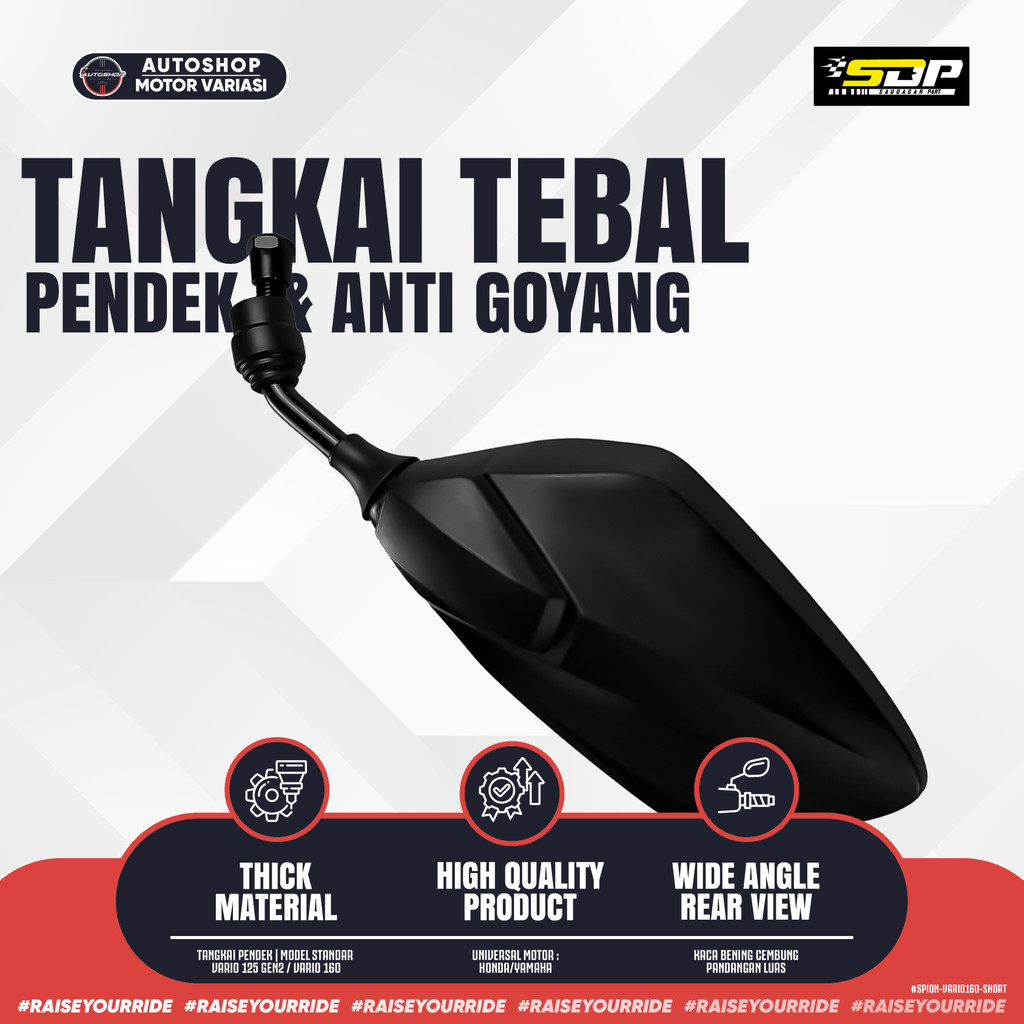 Spion VARIO 160 TANGKAI PENDEK Model Standar KACA BENING CEMBUNG PANDANGAN LUAS ANTI BLINDSPOT Universal Motor