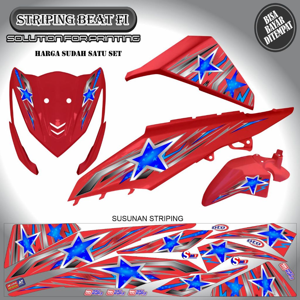 STRIPING VARIASI STICKER HONDA BEAT FI MOTIF BINTANG
