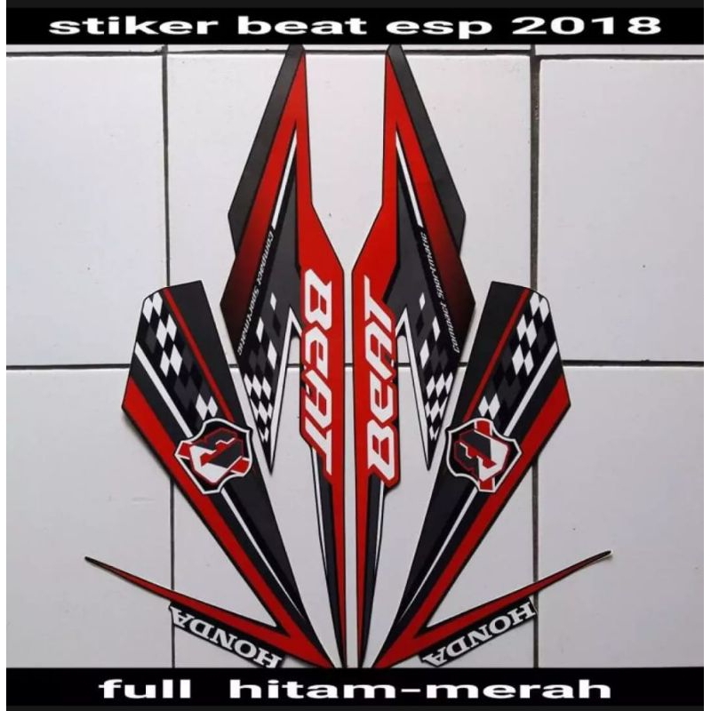 STIKER STRIPING LIS LES POLET PLAT PLISIR BODY MOTOR BEAT FI 2018 ESP ECO FULL HITAM MERAH