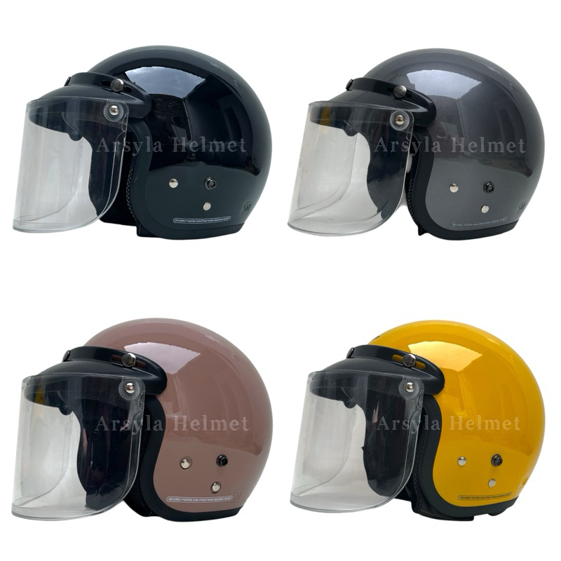 Helm Bogo Dewasa SNI Kaca Datar Bening Pria Wanita Full Leher