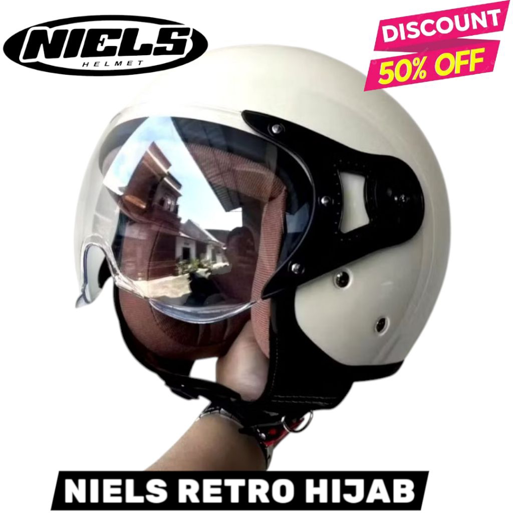 Helm NIELS Hijab-Helm MLA Hijab - Helm Bogo RETRO PILOT Pria Wanita Bogo Hijab SNI Harga Murah