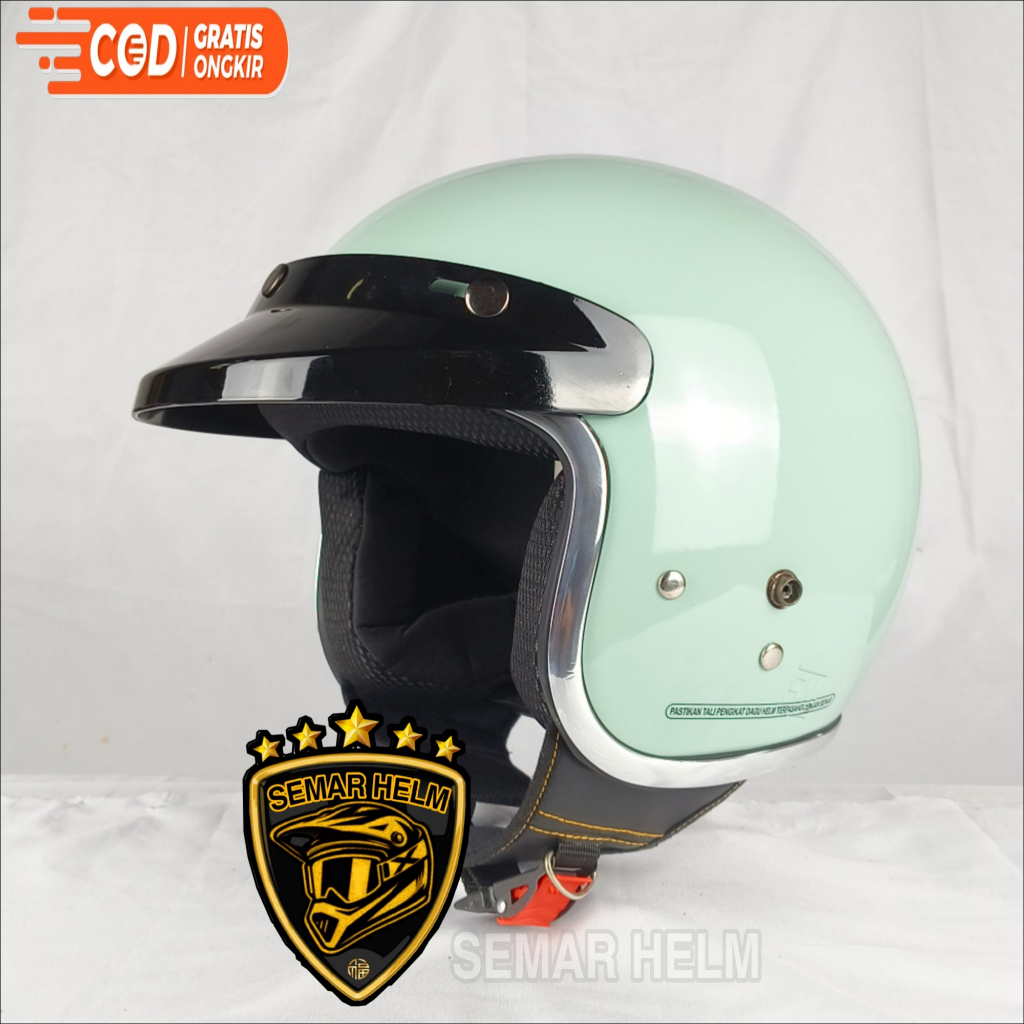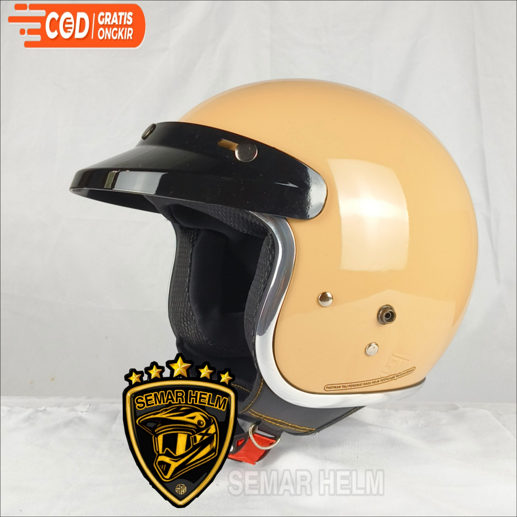 (FREE BOX) HELM BOGO WANITA PRIA DEWASA FULL LEHER SNI PREMIUM - Helm bogo retro PET PENDEK Terlaris