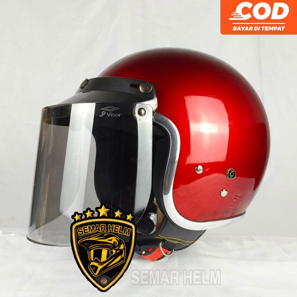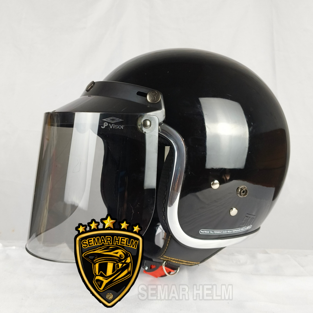 (FREE KACA) HELM BOGO WANITA DEWASA LIST CROM KACA DATAR HITAM - helm retro wanita pria SNI TERLARIS