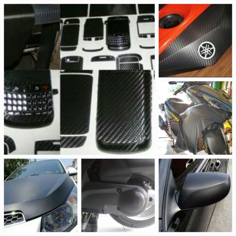 Stiker skotlet serat carbon 3D hitam doff Lebar 50cm