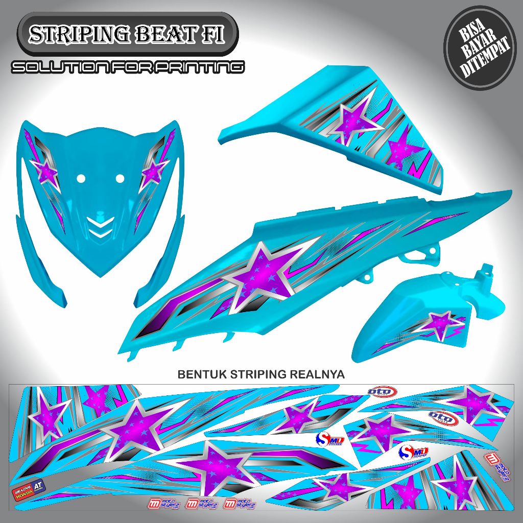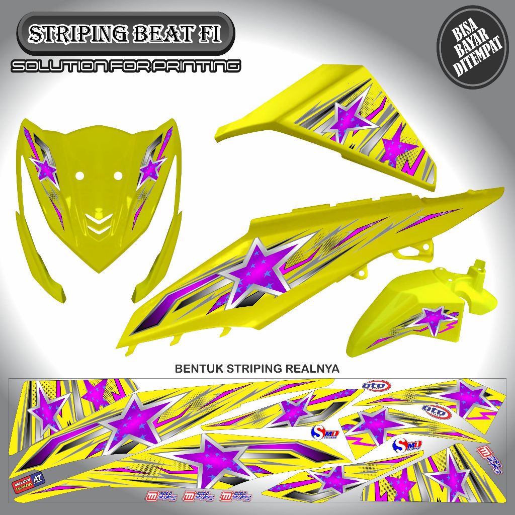 STRIPING VARIASI STICKER HONDA BEAT FI OLD MOTIF BINTANG KEREN SIMPLE MURAH