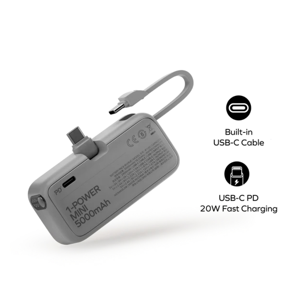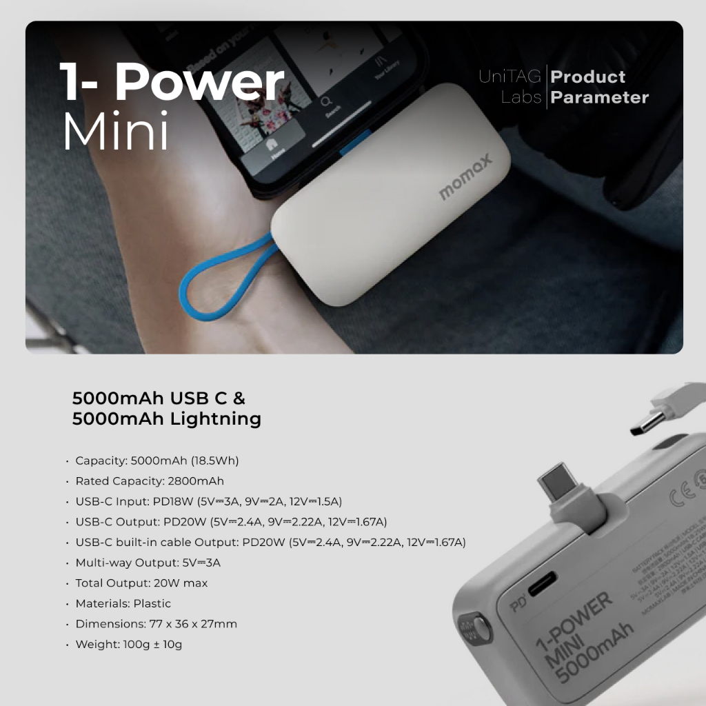 Powerbank Mini Type C Lightning MOMAX 1-Power Mini 3in1 Fast Charging For iPhone Samsung Android 5000mAh MFi PD 20 Watt