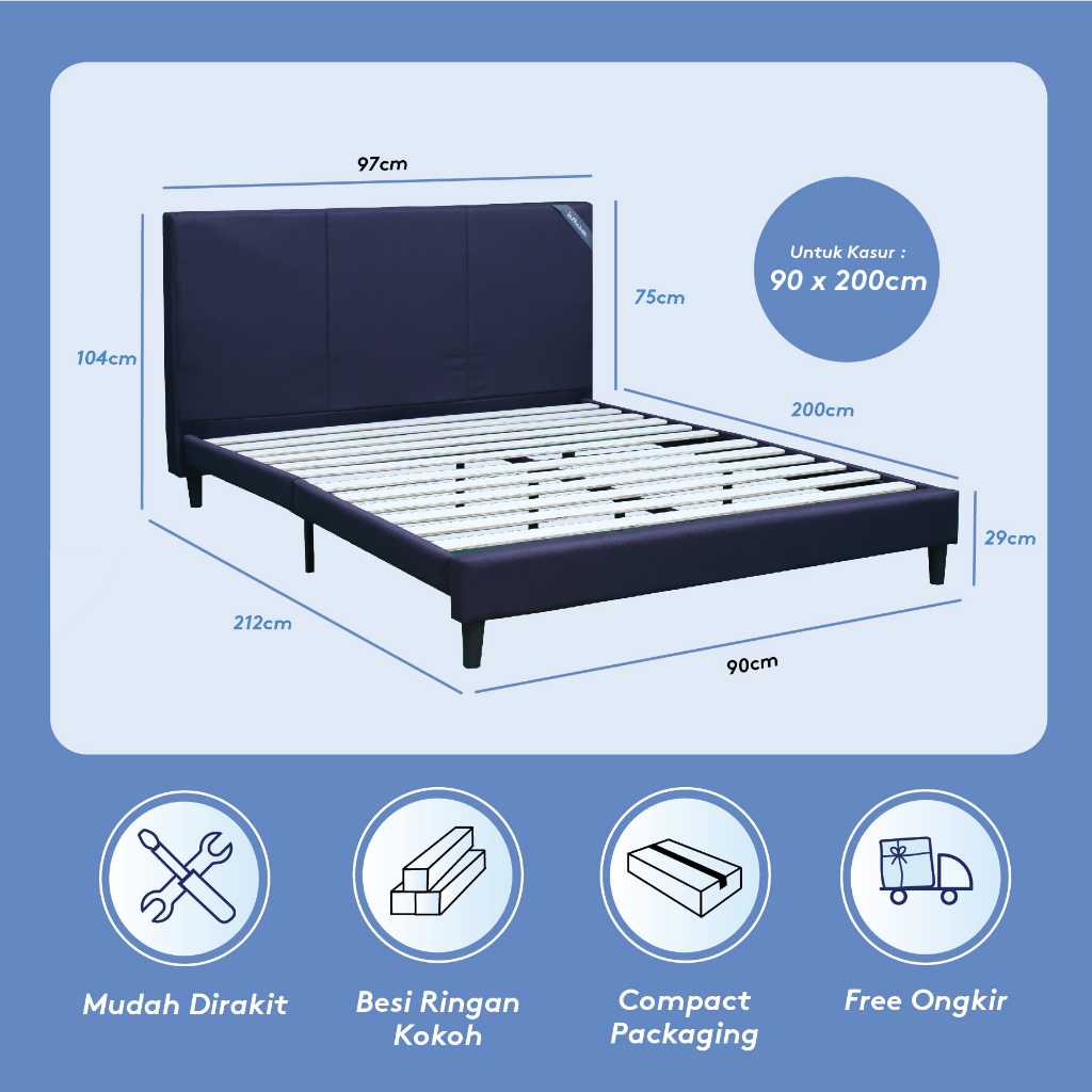 INTHEBOX Ranjang besi dan sandaran kasur dipan 120X200 160x200 180x200 Tempat Tidur Divan Lipat Susun 2 Tingkat Murah