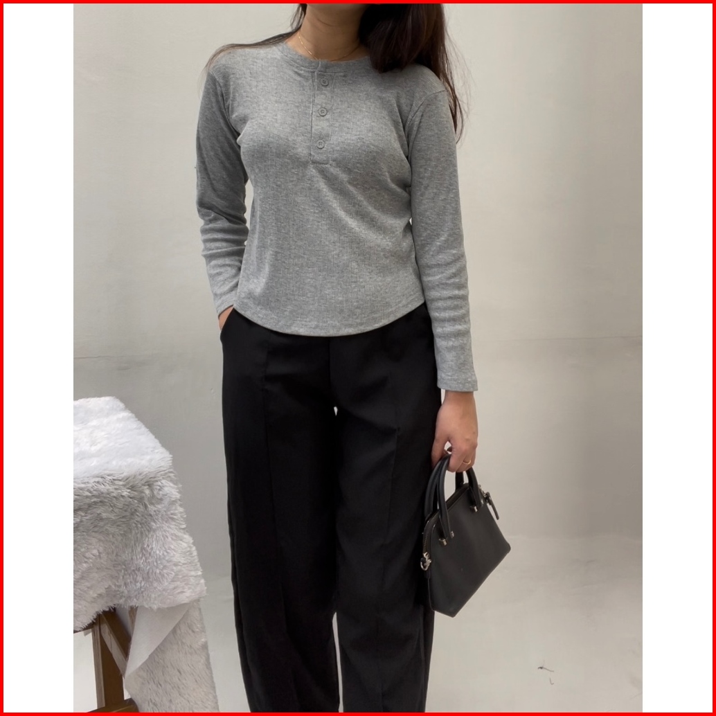 Wyatt Knit Top Casual Atasan Lengan Panjang Longsleeve Trendy Hijab Friendly Pakaian Wanita Kuliah Kerja Kaos K14
