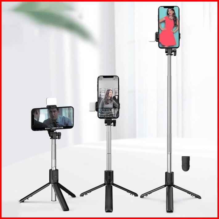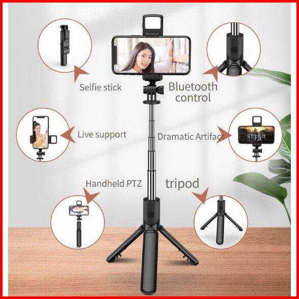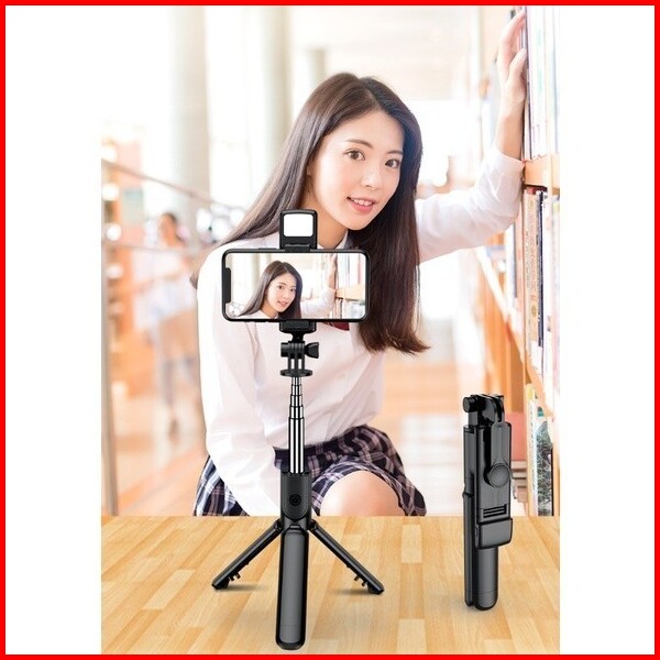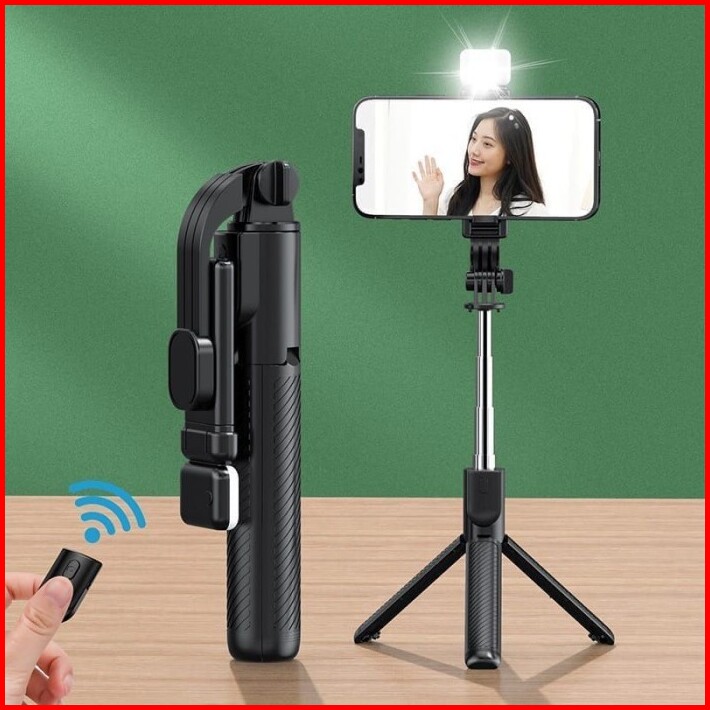 Tongkat Selfie Stick R1s Tongsis Lipat Mini 4in1 Plus Remote Control Bluetooth Tripod Plus Lampu Led Flash R1s Led Selfi