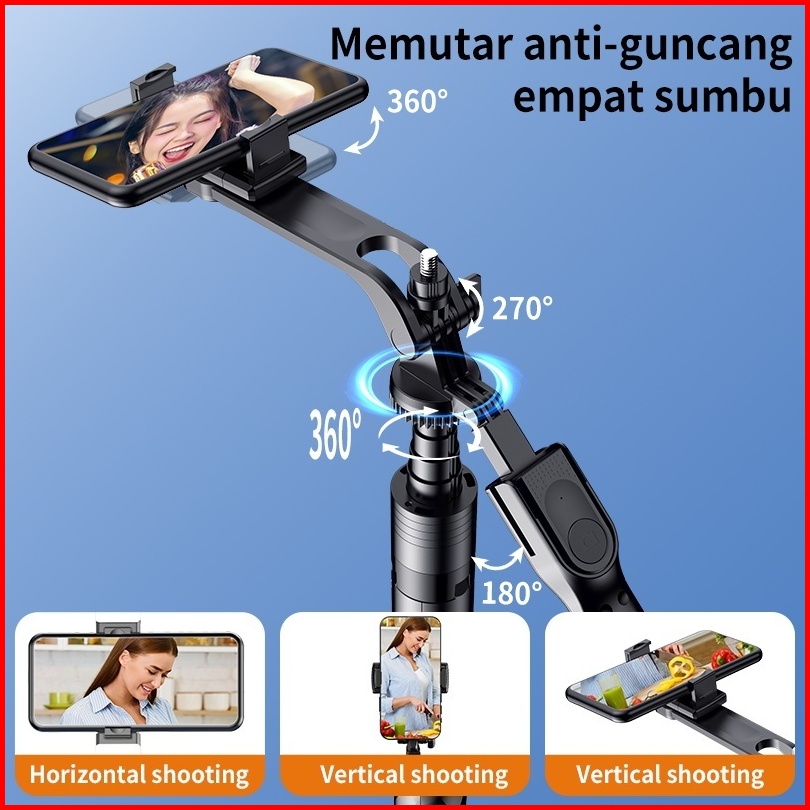 Z18 180cm Tongsis Anti-guncang Tripod Bluetooth Remote With Video Light Kontent Kreator Hp Kamera Gopro Kamera Aksi Dslr