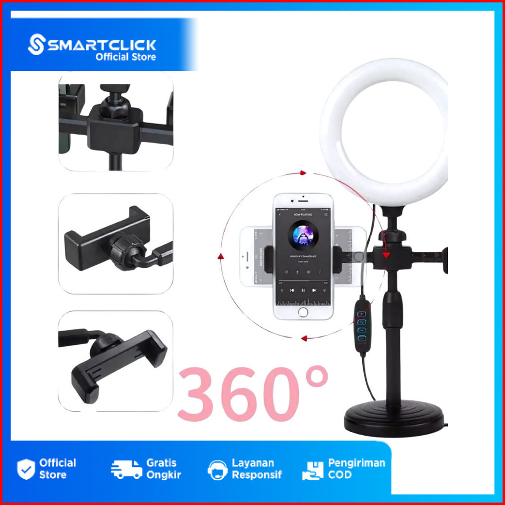 Ring Light 16cm Tripod 28cm With 2 Holder Mini Stand Hp Stream Selfie Make Up Vlog Lampu