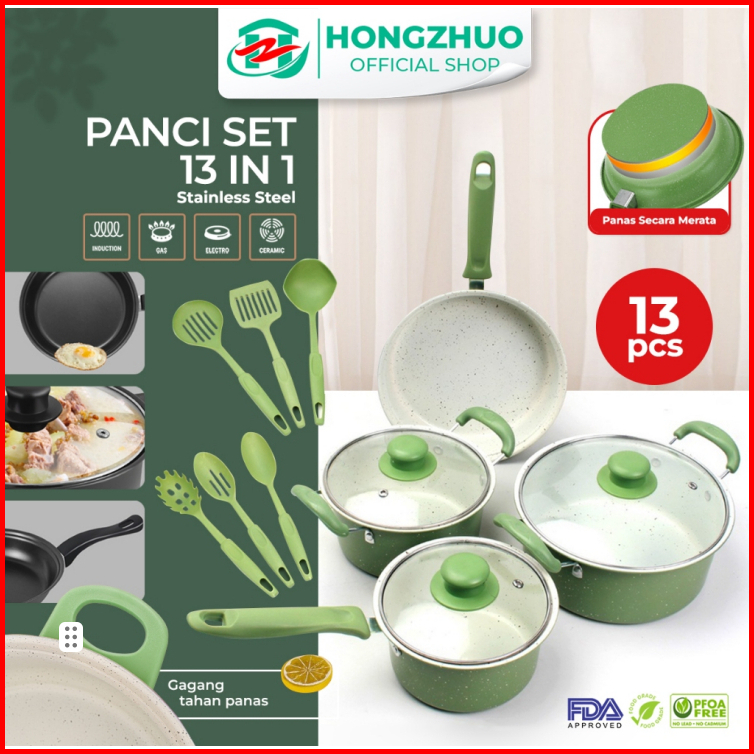 Hongzhuo Cookware Panci Set Penggorengan Spatula Set Isi 13pcs 1 Set Frypan Saucepan