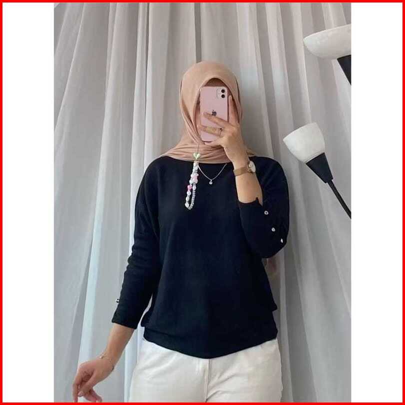 Inara Knitwear Iner Rajut Japanline - Iner Rajut Lengan Panjang Kancing - Inara Kancing Korean Style Blouse
