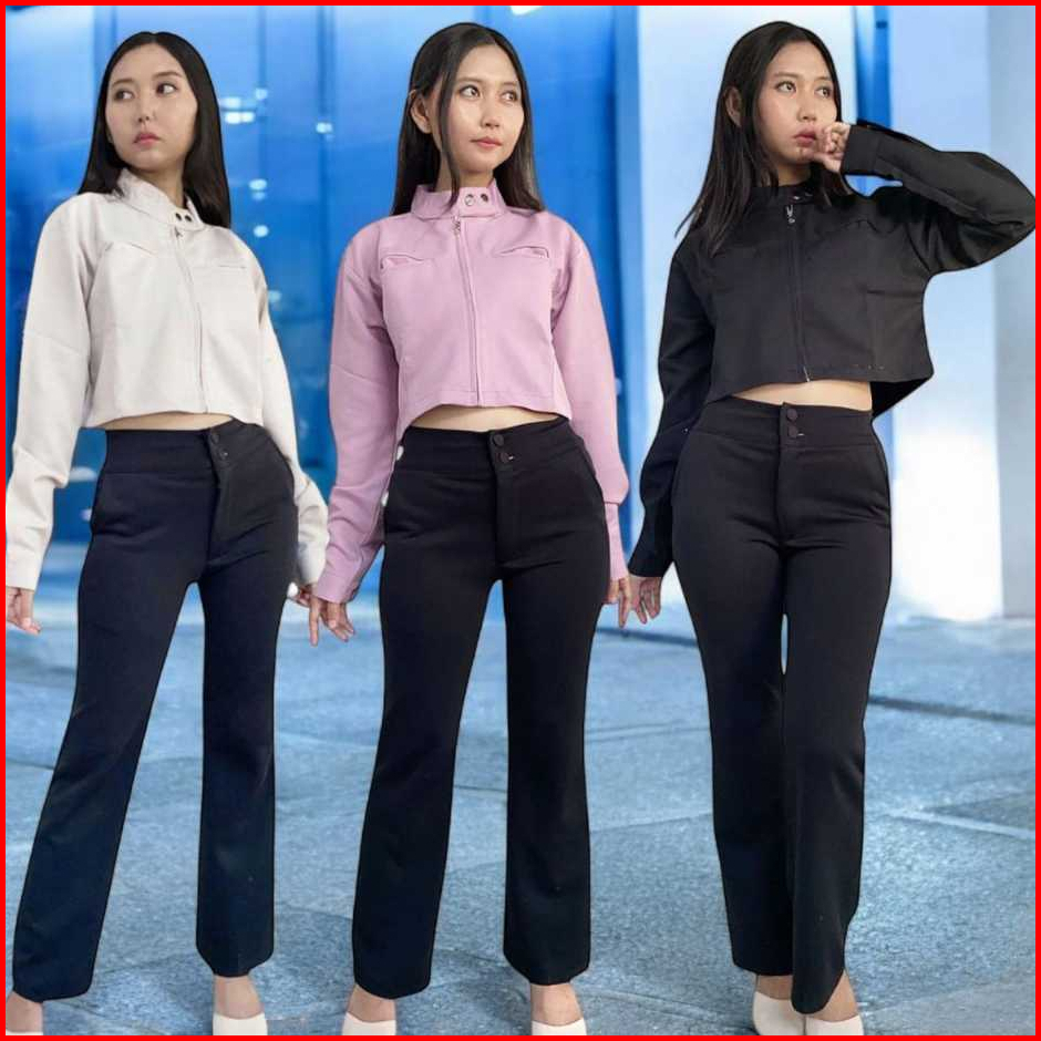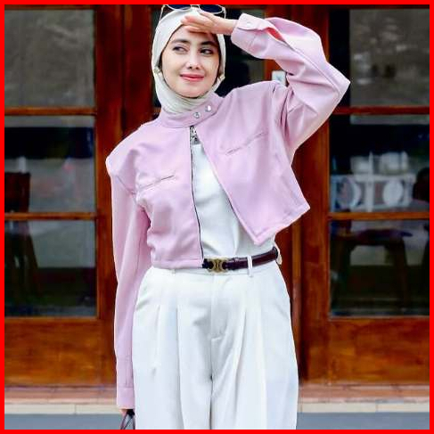 Promo Murah Jaket Crop Wanita Zipper Lengan Panjang Atasan Crop Wanita Bahan Semi Woll Premium