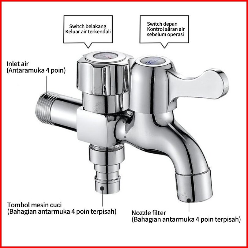 Kran Cabang Chrome Kran Air Keran Tembok Wall Tap Mesin Kran Mesin Cuci Kran Taman Kran Serbaguna