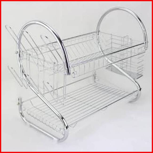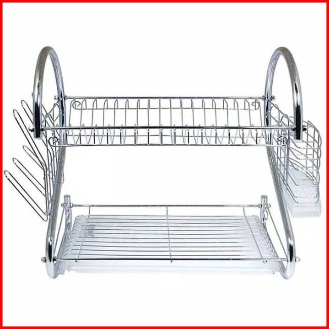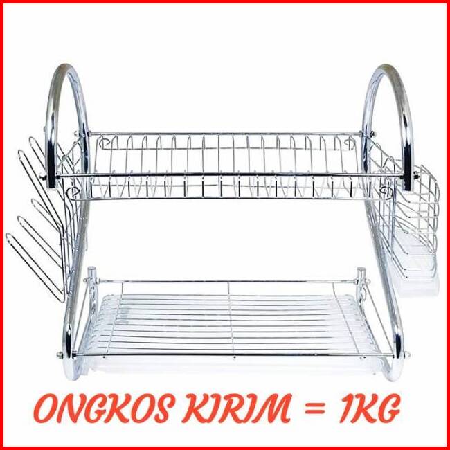 Rak Piring Stainless Minimalis 2 Tingkat Besi 2 Layer Dish Drainer