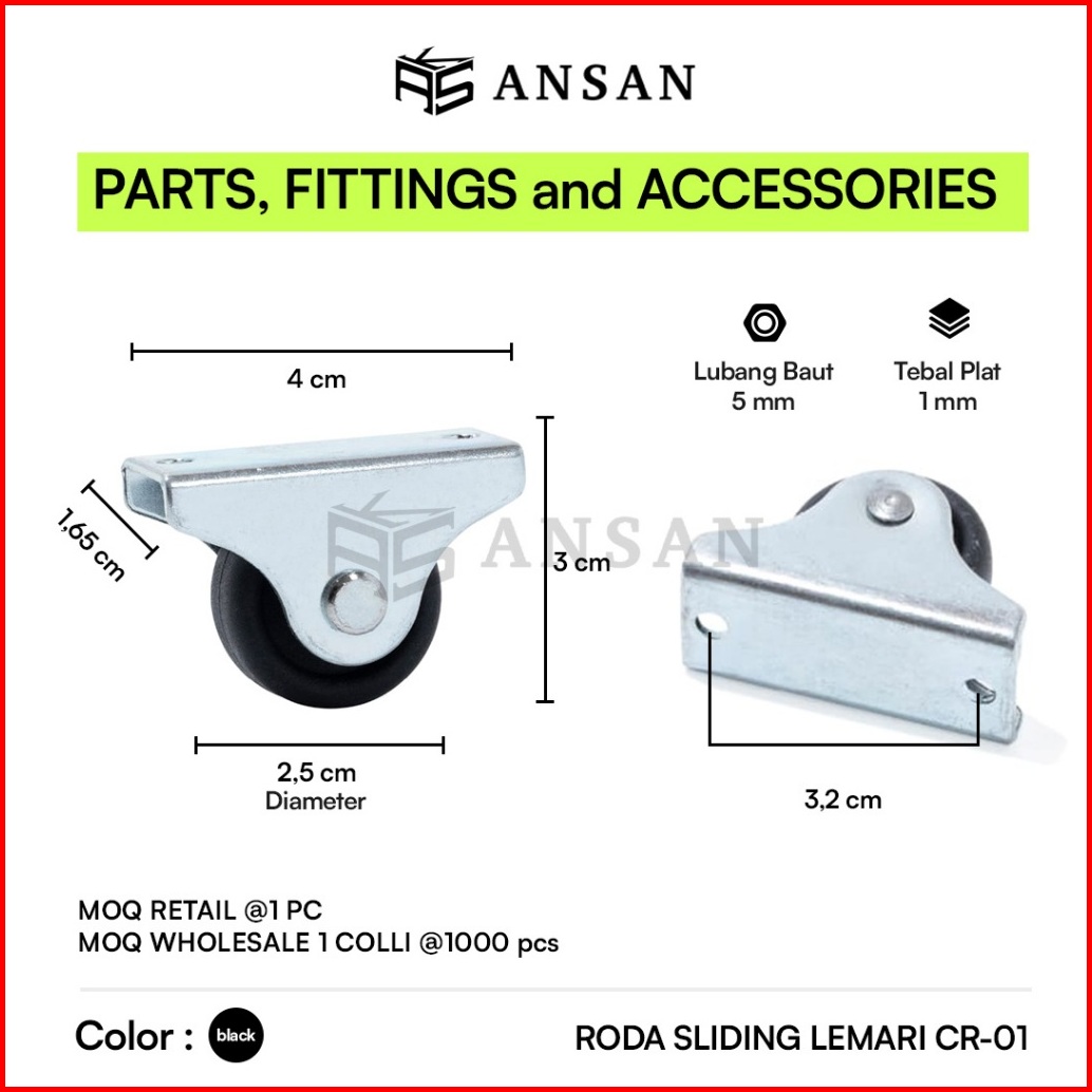 Roda Sliding Pintu Lemari 1pc 2 5cm 1 Inch Roda Geser Lemari Senyap Sparepart Lemari Castor