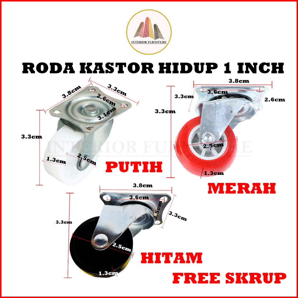 Roda Kastor Plate Pvc Nylon Roda Troly Etalase 1 Inch Mati Hidup 1pcs Free Sekrup