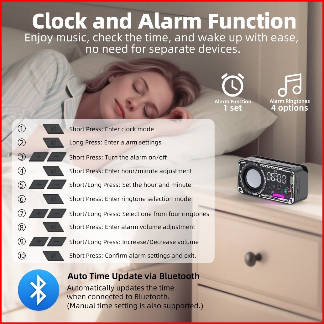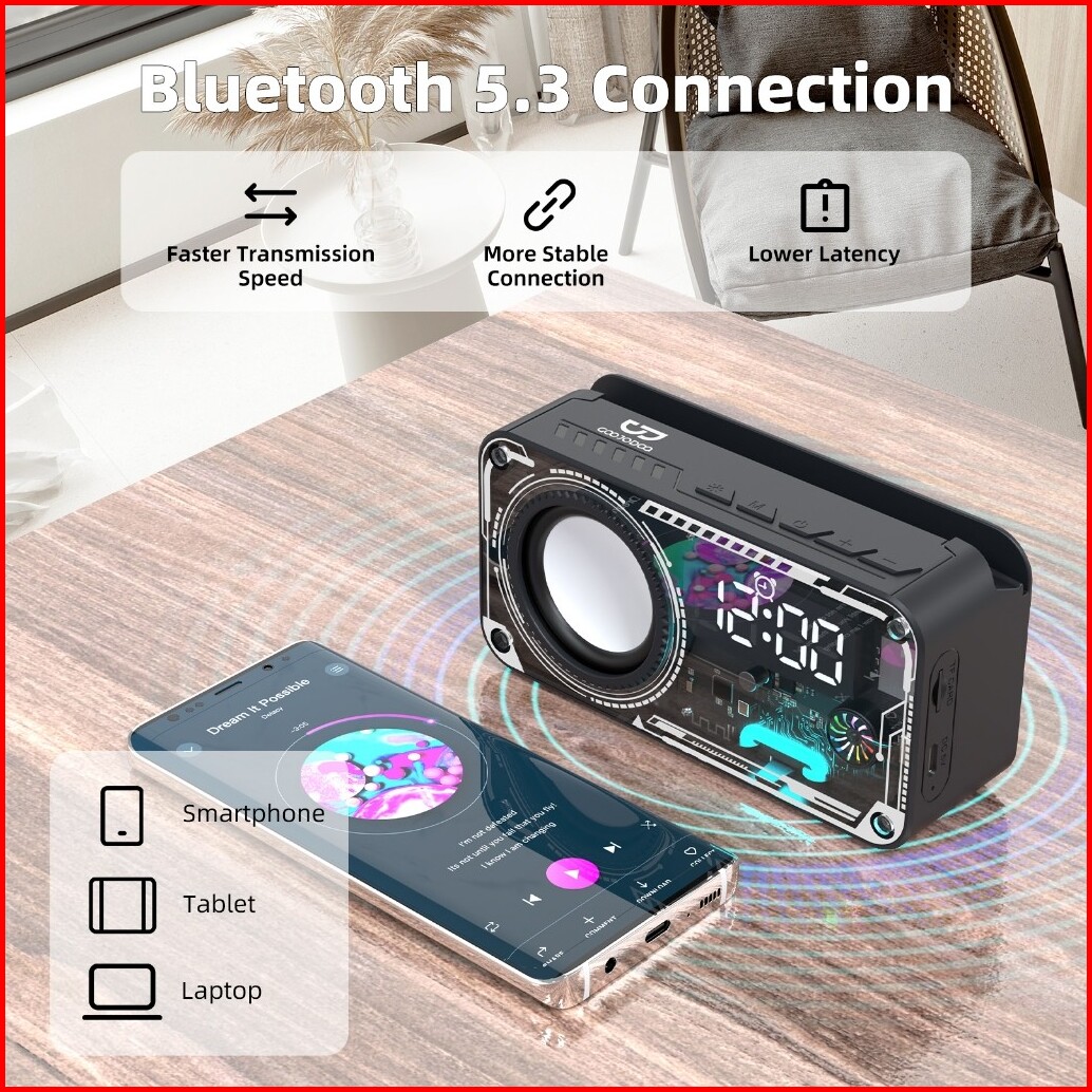 Goojodoq Ab4088 Jam Speaker Bluetooth Speaker 5.3 Surround Sound System Rgb Multifunction Alarm Clock Smart Speaker