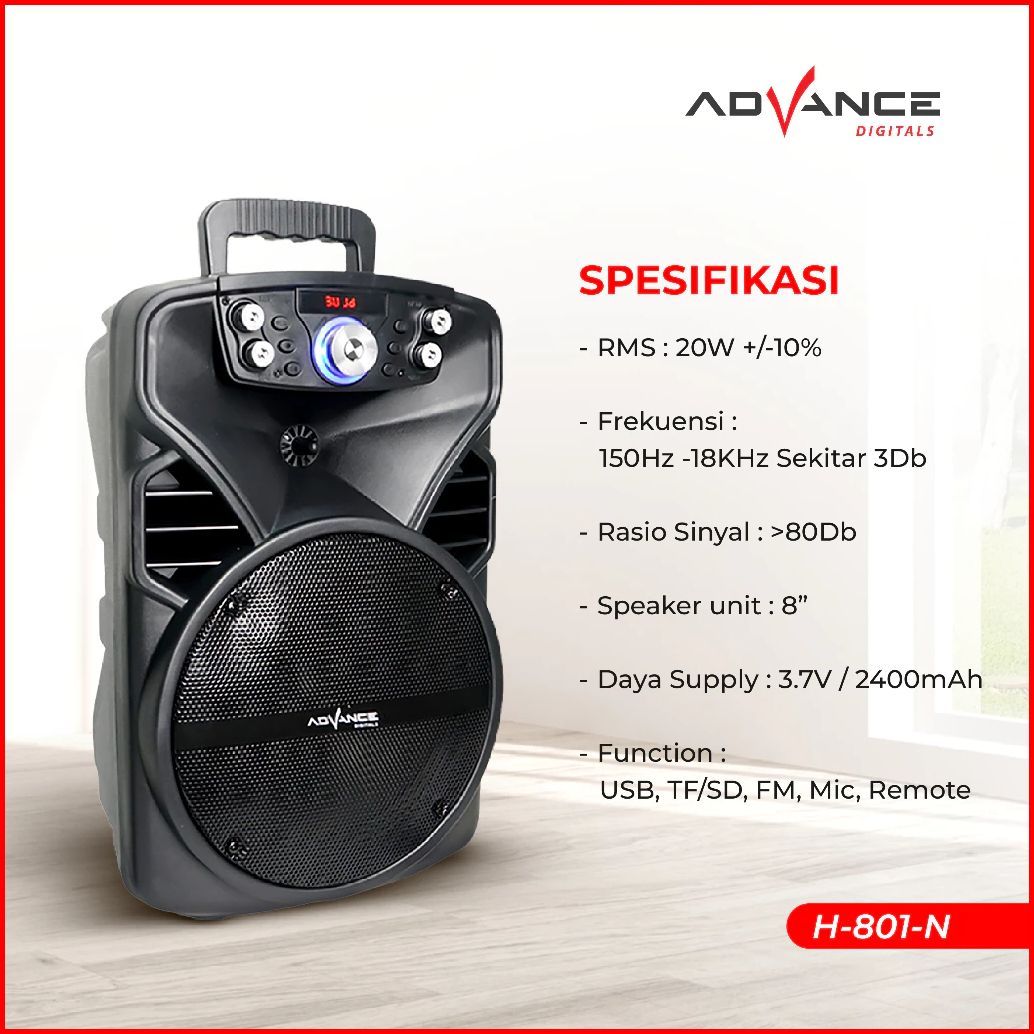Codadvance Speaker Bluetooth Portable 8inch Free 2 Mic Karaoke Wireless H801n