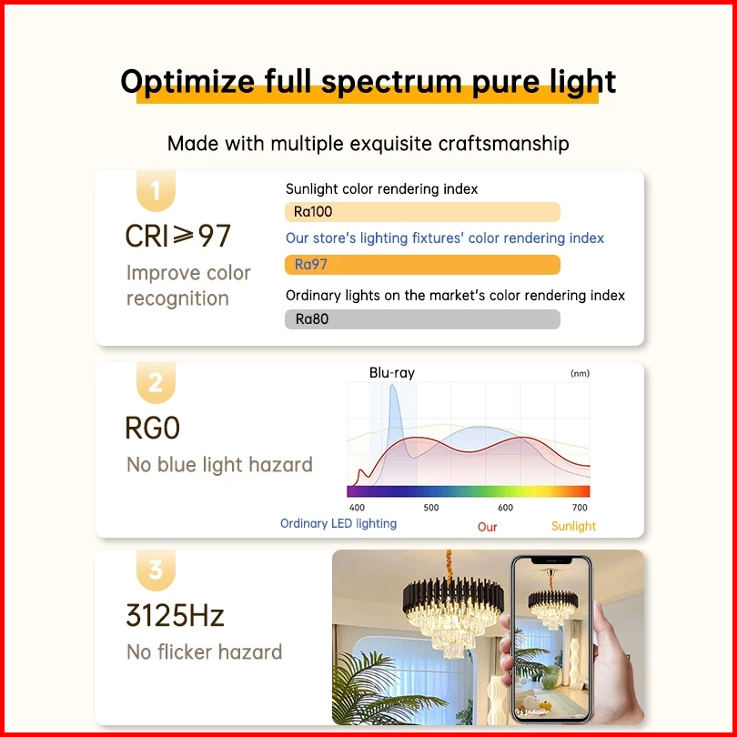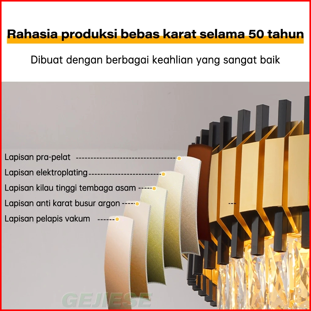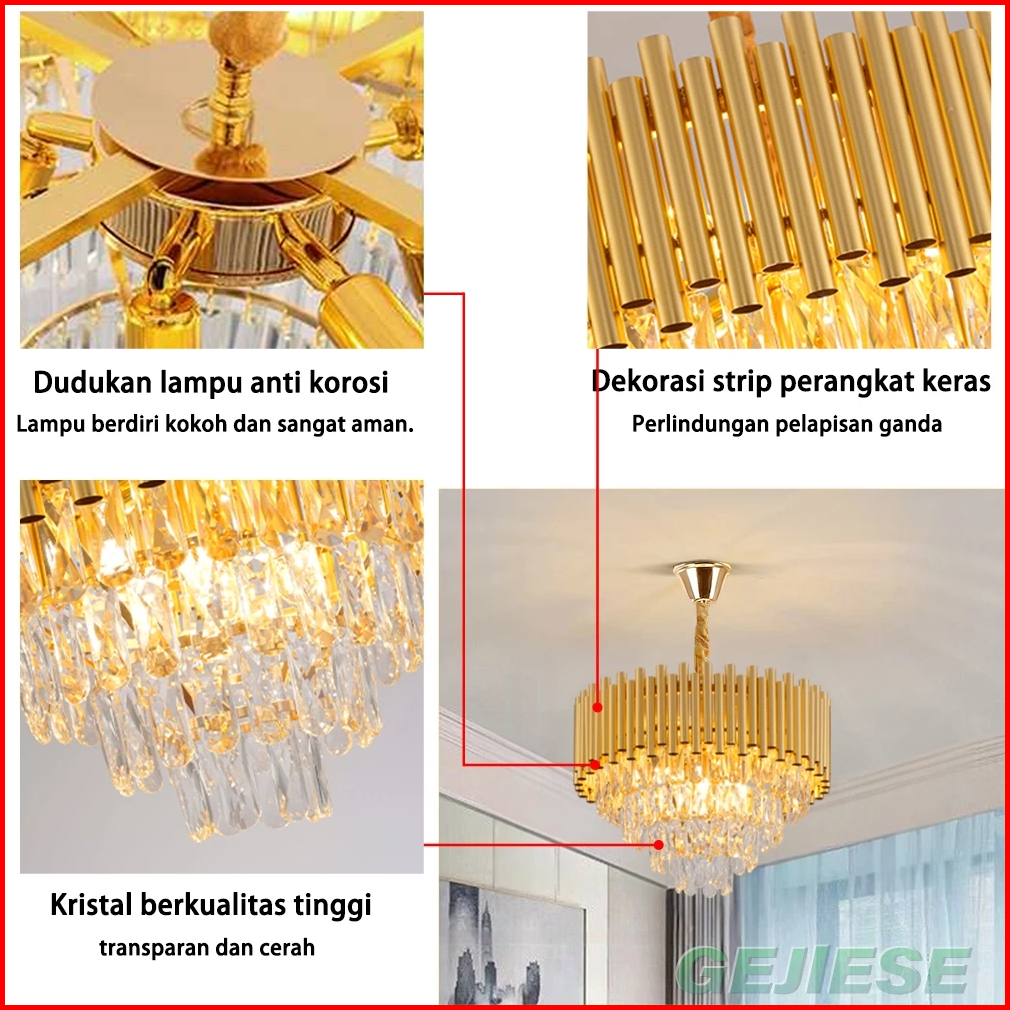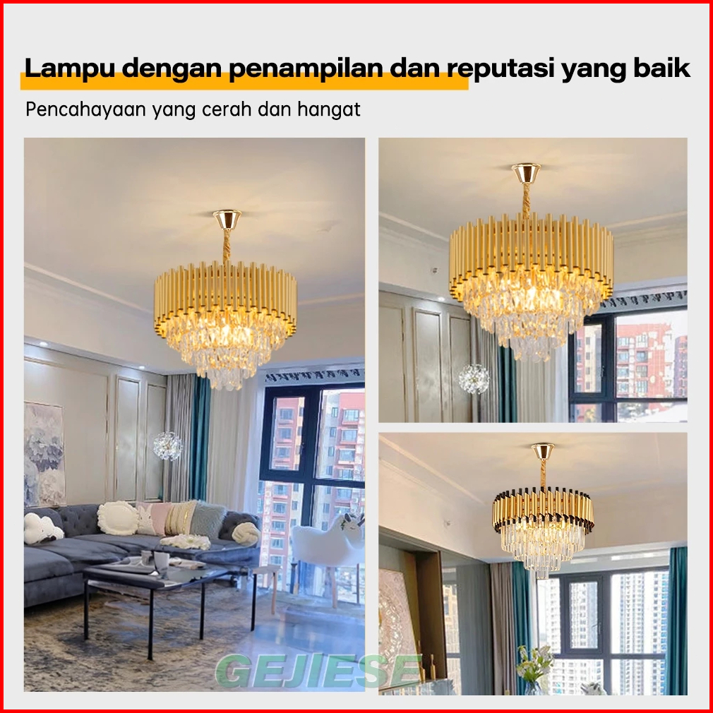 Gogeous Lampu Gantung Kristal Mewah 50cm 3 Warna Ruang Tamu Meja Makan Kamar Tidur Lampu Kristal Hias
