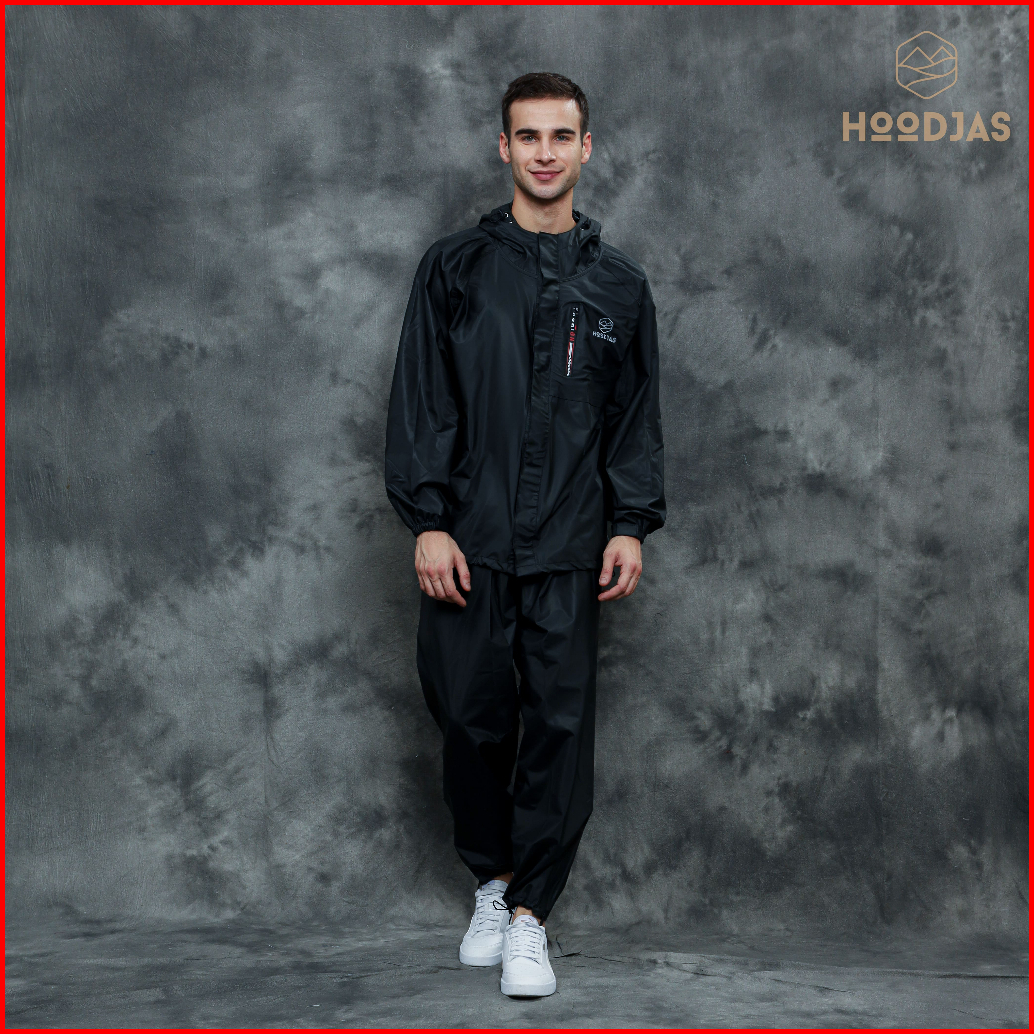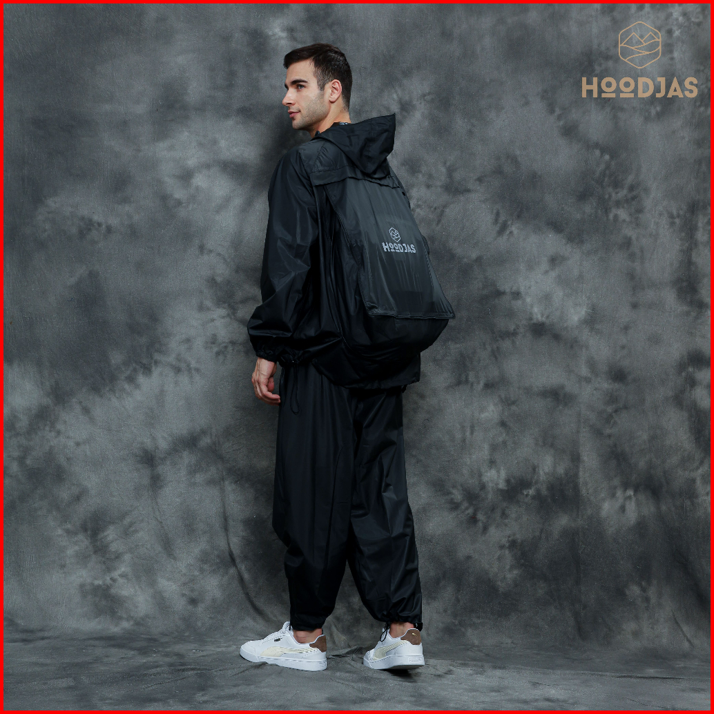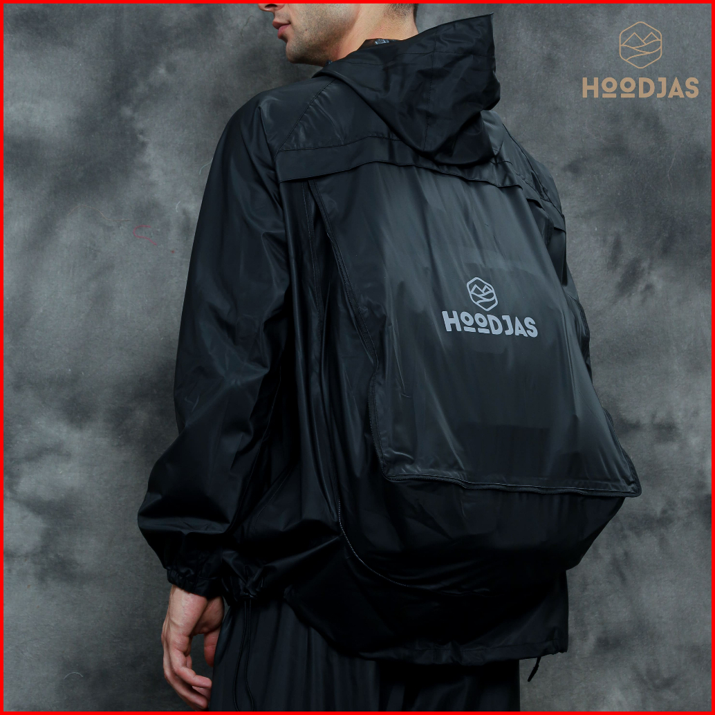 Hoodjas Jas Hujan Raincoat Ransel Backpack Pria Wanita Bahan Pvc Warna Hitam