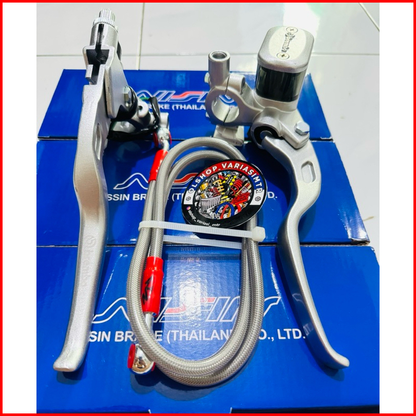 Paketan Full Silvet Master Rem Tabung Kotak Big Logo Selang Rem Serat Silver 90-95cm Semua Motor