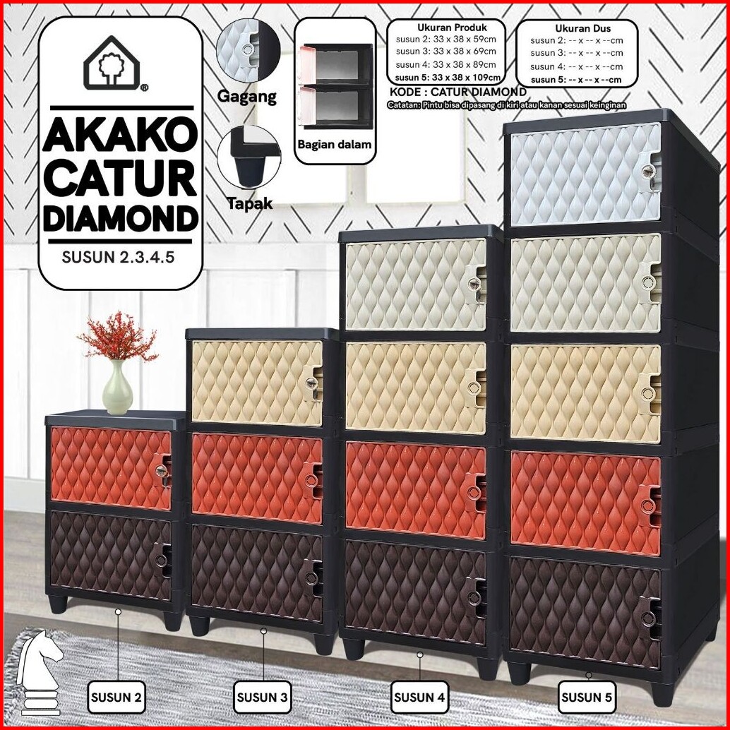 Akako - Lemari Pakaian Swing Catur Diamond Full Kunci Laci Susun 2 3 4 5