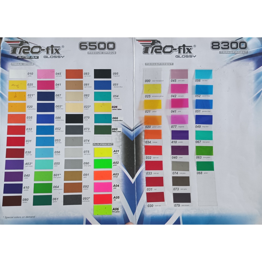 Orange, Kuning, Ungu tua, Merah muda, Abu muda, Putih, Hijau toska, Hijau tua, Biru tua, Kuning tua