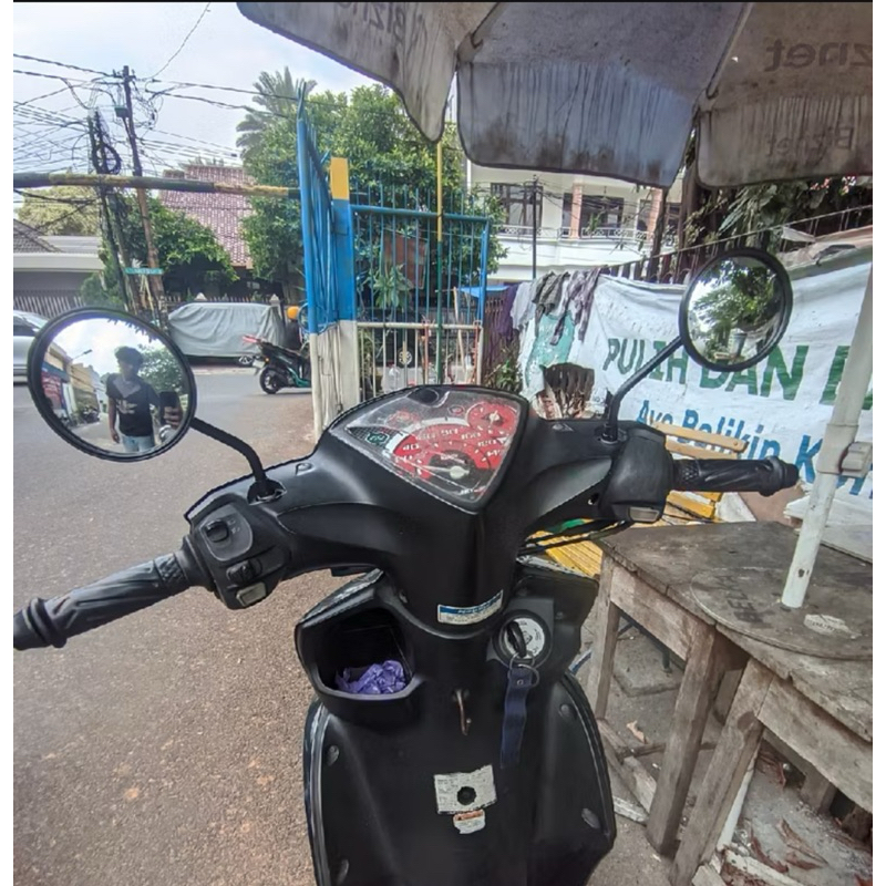 Spion Bulat Retro Classic custom Hitam Kaca Cembung universal honda dan yamaha